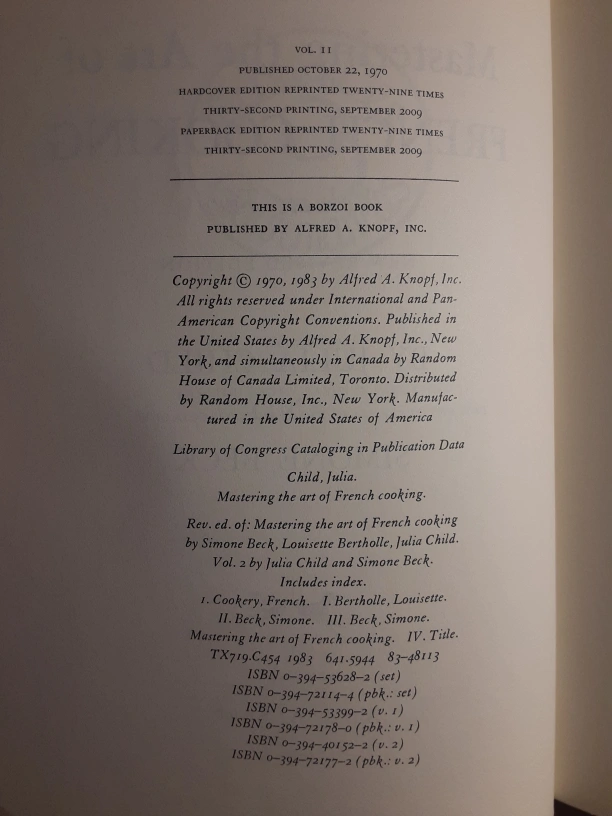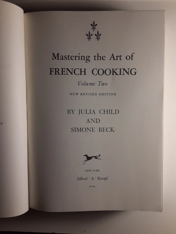 "Mastering the Art of French Cooking, Volume Two" by Julia Child and Simone Beck. This is a new revised edition, published by Alfred A. Knopf in 2009. $39.95 + tax brand new.