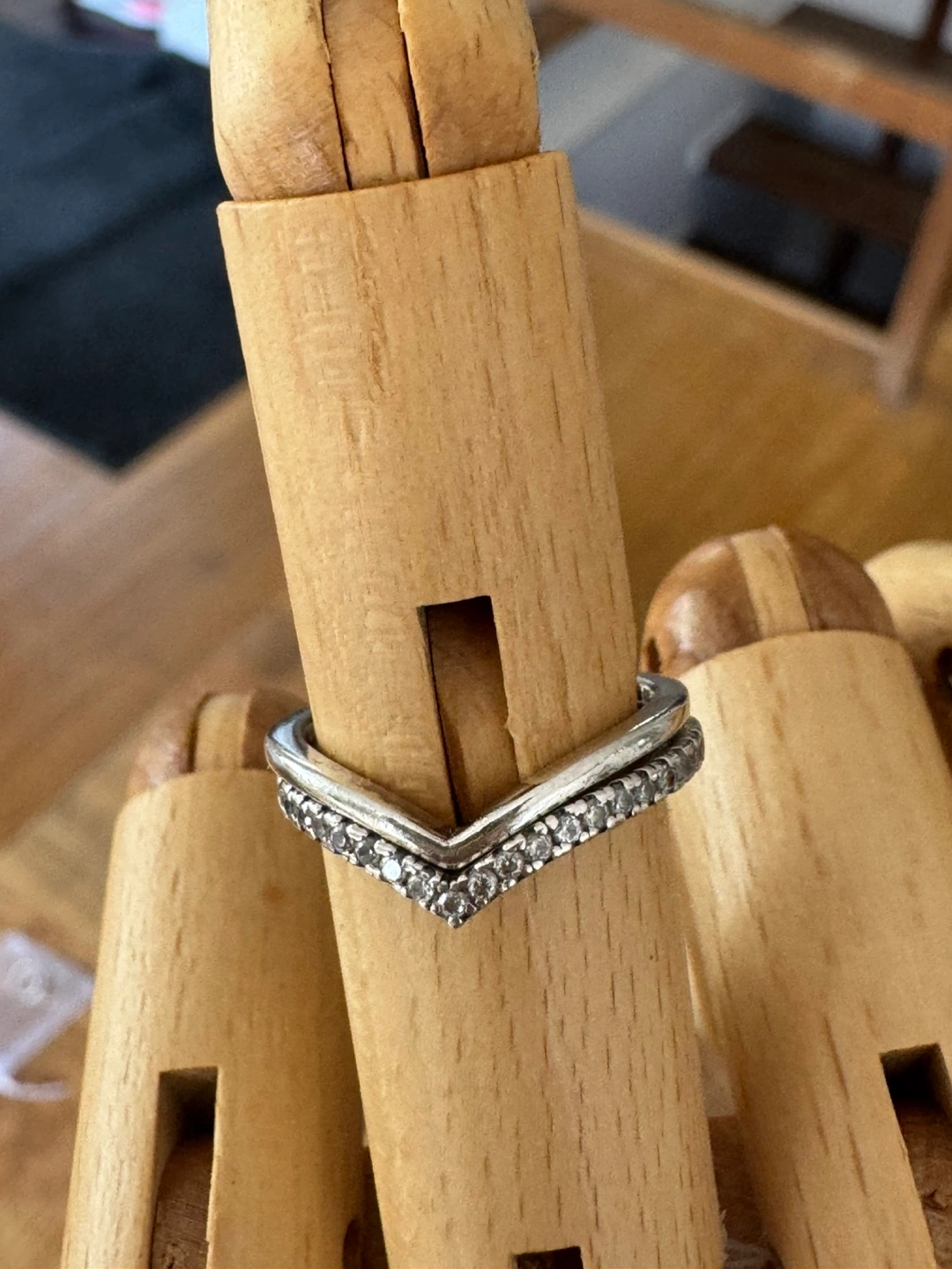 Authentic Selling a Pandora Wishbone ring. It's a size 48 and made of S925 ALE silver. Perfect for adding a touch of sparkle to your everyday look! Please note one of the pictures with the 2 rings I am selling separate. The picture is for showing that you can wear it both. Pickup at Long branch Final sale Reasonable offers