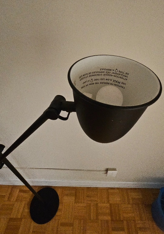 Selling a black adjustable floor lamp in great condition! The lamp is easy to adjust to different heights and angles, making it ideal for reading or working. Bulb included.