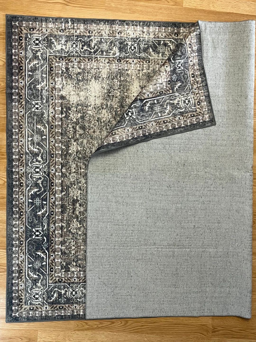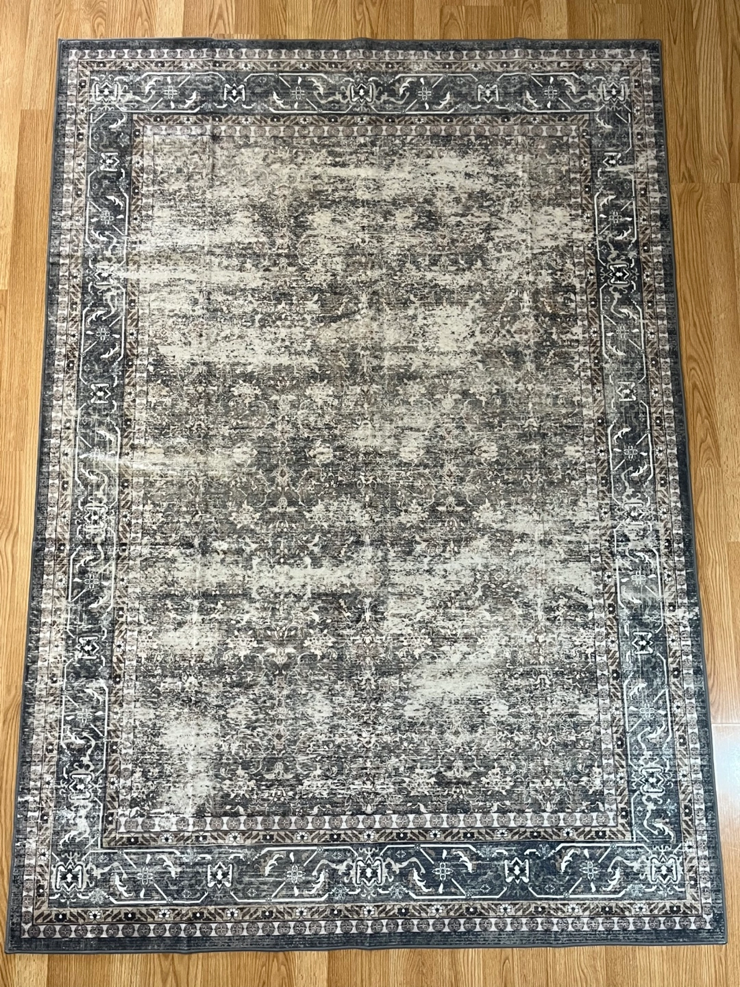 Brand new 5x7ft rug. It is designed in mixed colors of light brown and dark blue with vintage design and distressed patterns. The mixed colors add more softness and antique charm. Perfect for your living room, bedroom, dining room, kitchen, office, and business center. Non slip, machine washable and easy to clean. Pick up from NW. Pet and smoke free home. **Size: 5×7 ft **Color/Pattern: Brown, blue, beige/Vintage, distressed style