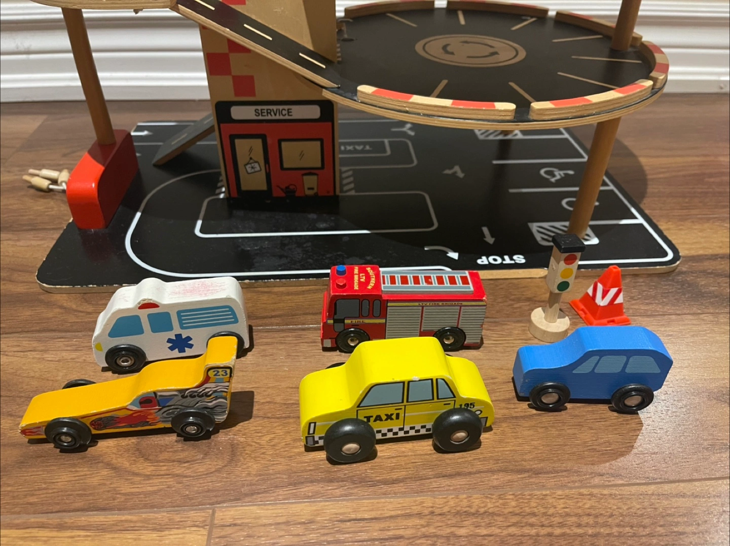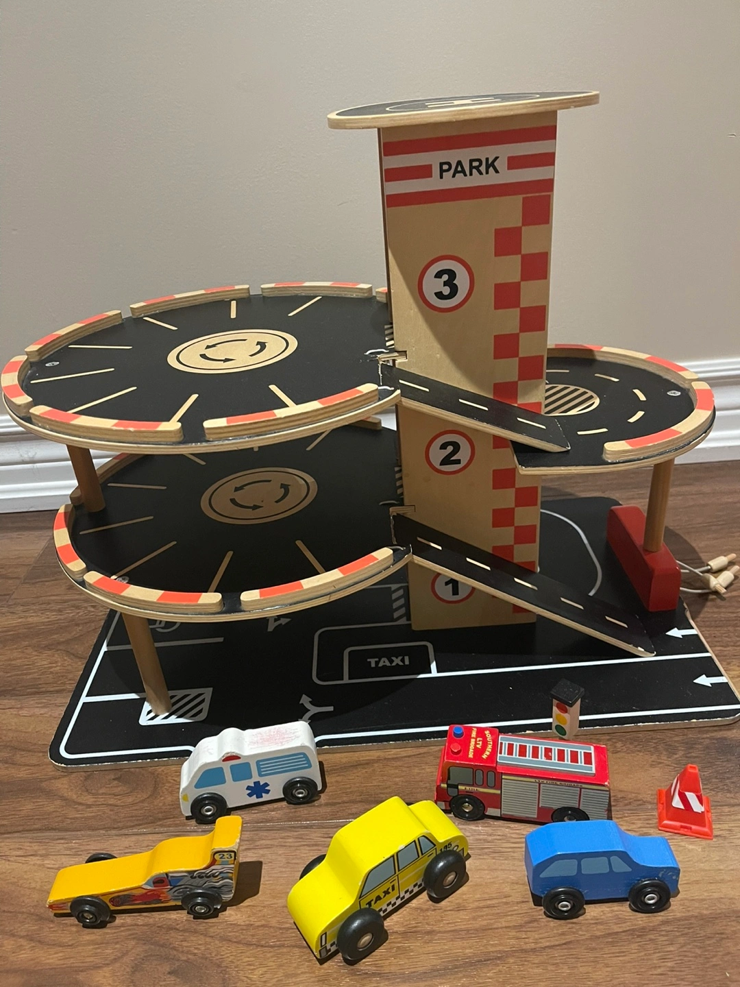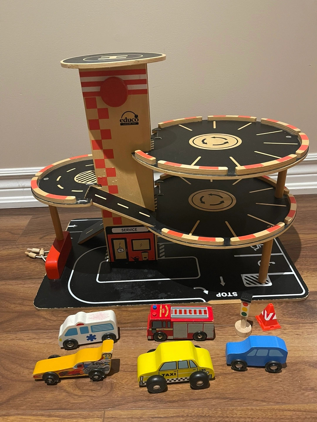 Educo by Hape International Park n' Go Garage Kids wood car garage with wood cars Hours of fun Only $50 Pickup near Bathurst and Steeles