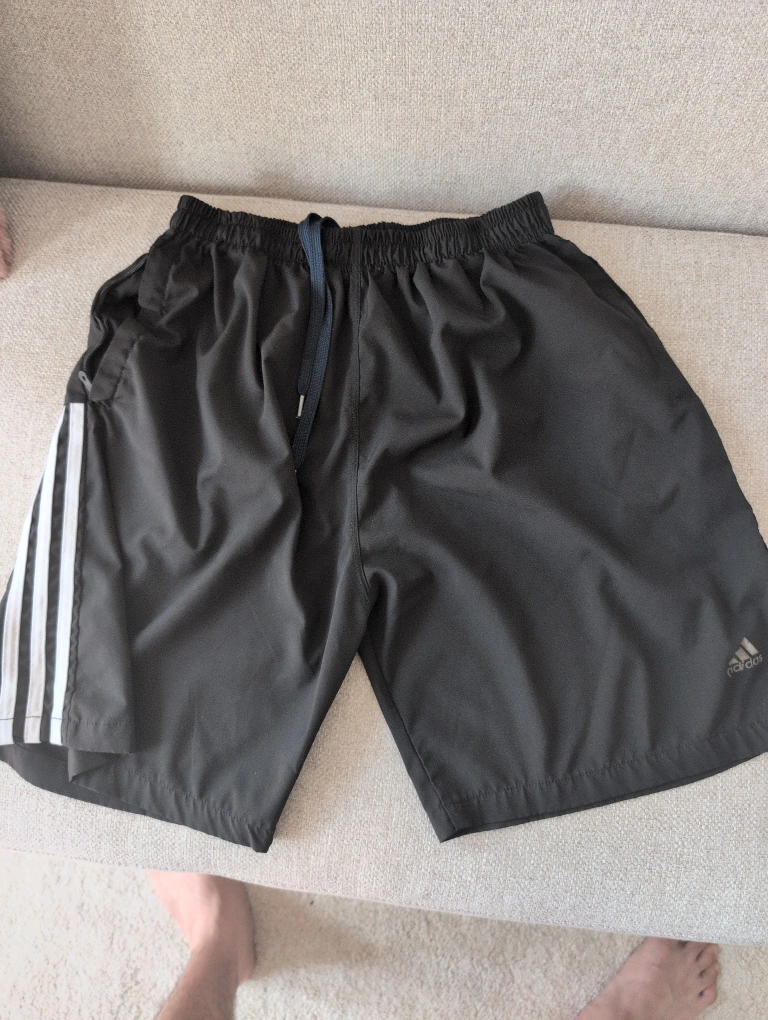 1000+Selling a pair of Adidas athletic shorts in black. They feature the classic three stripes on the side. Perfect for sports or casual wear! can be worn in gym as well. can give discount if you buy more items from my listings...