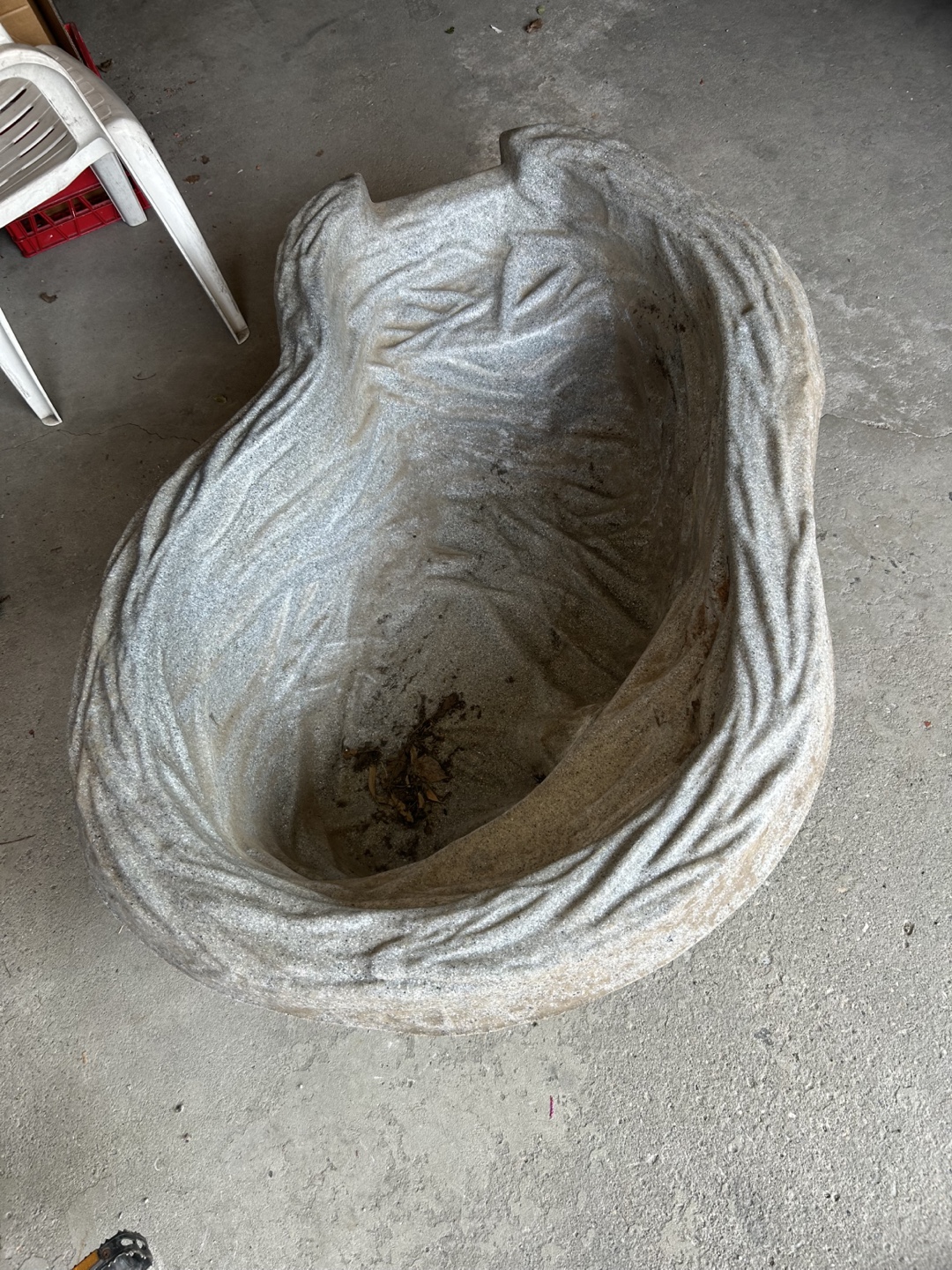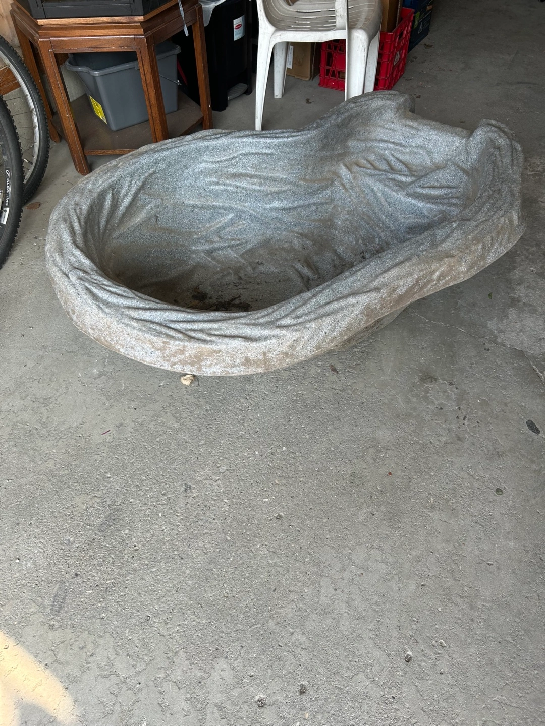 Preformed garden pond liner. It's in good condition and ready to be placed in your yard!
