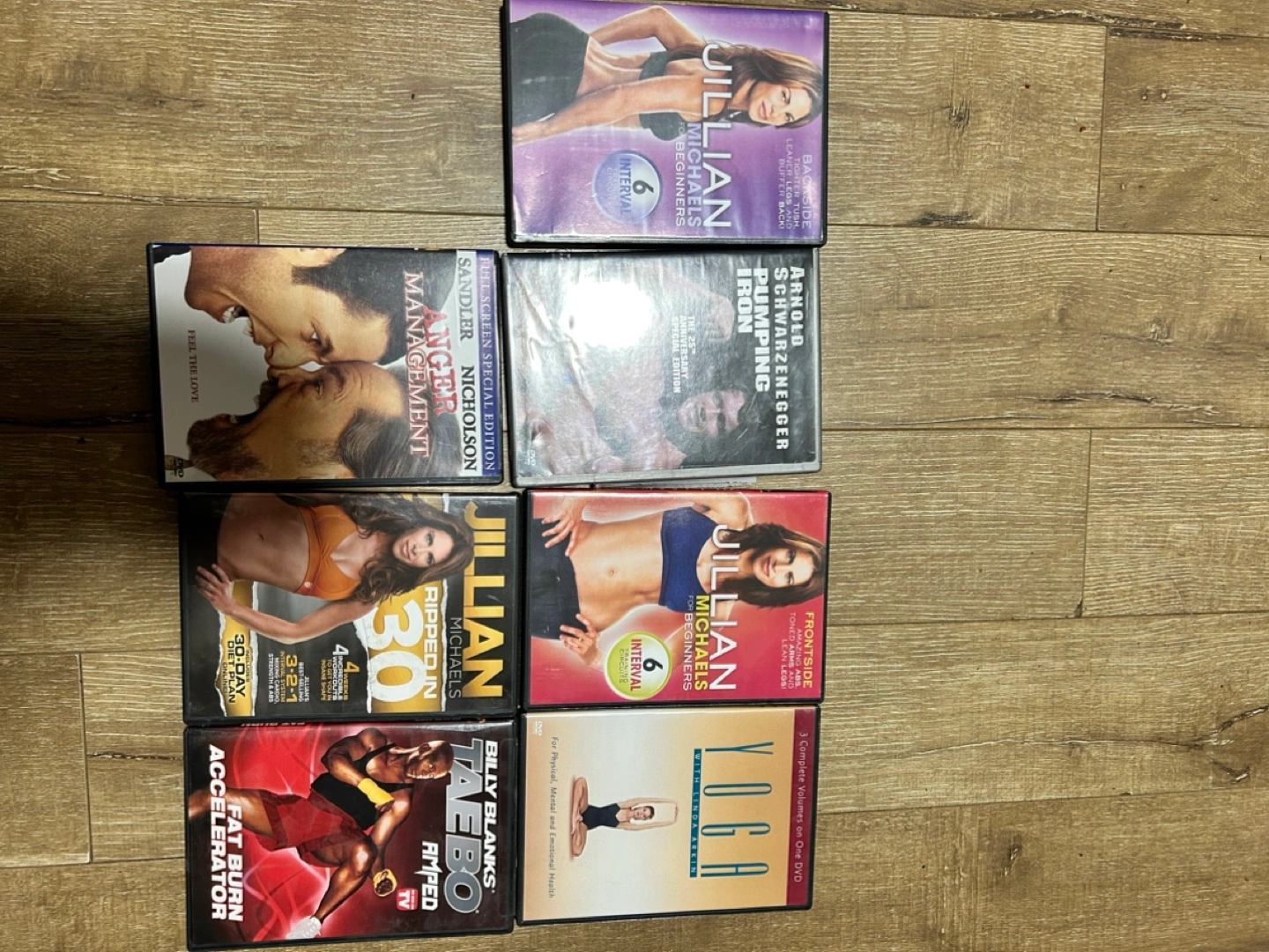 Selling a mixed lot of DVDs! Titles include comedies, action, family movies, and fitness DVDs. Great for a variety of tastes! Need gone by Friday I am moving!