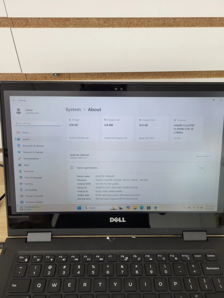 81Selling a Dell Latitude 3390 2-in-1 laptop in great condition! It features 238 GB of storage and 16 GB of installed RAM. The graphics card is an Intel(R) UHD Graphics 620. It's a versatile device that can be used as a laptop or a tablet