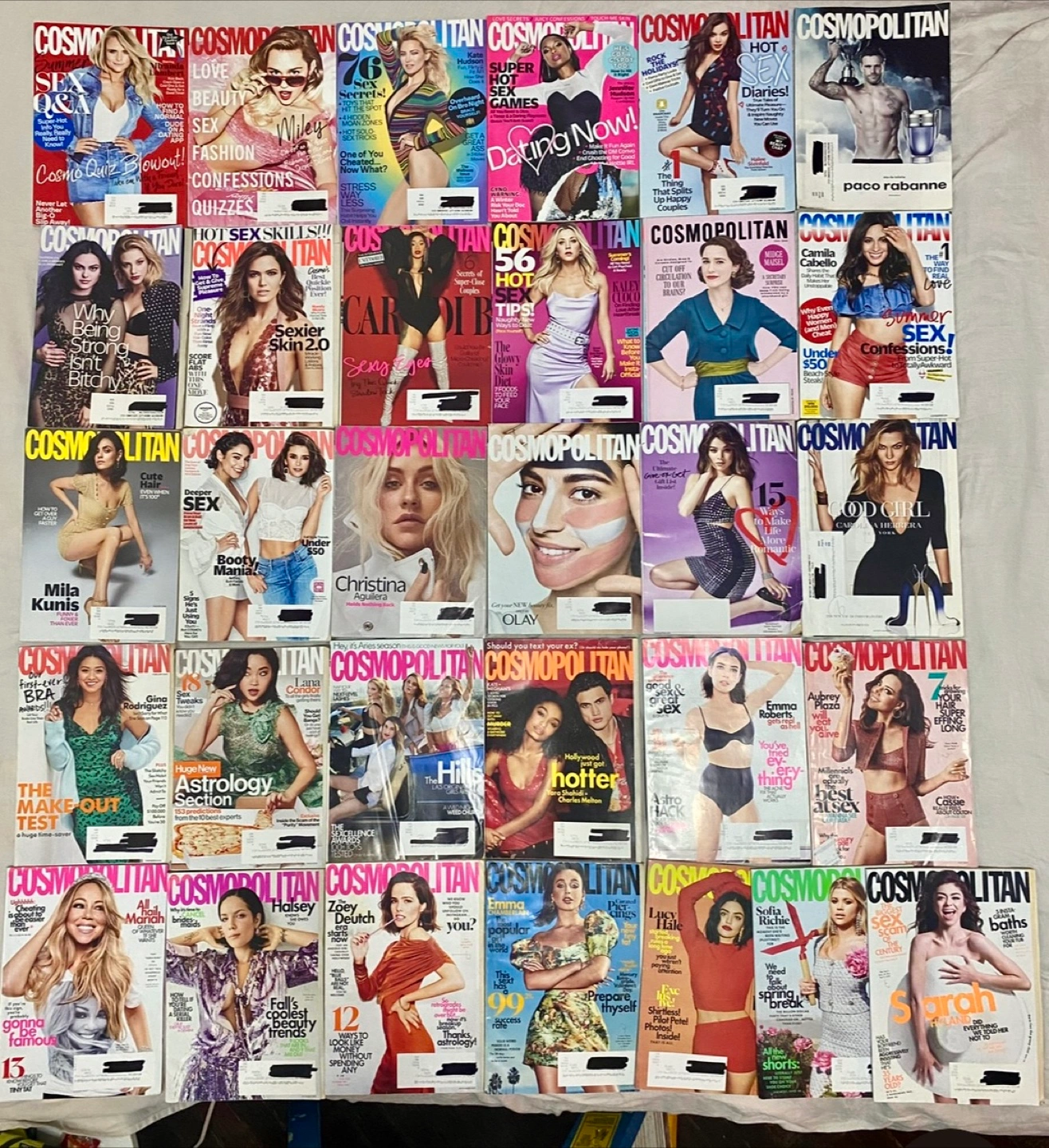 Selling a collection of Cosmopolitan magazines from Aug 2017 through May 2020. There are many different issues with a variety of cover stars and articles. Great for browsing or collecting. Cash and pickup deal only. I am close to Myrtle and Wyckoff Aves, Brooklyn.