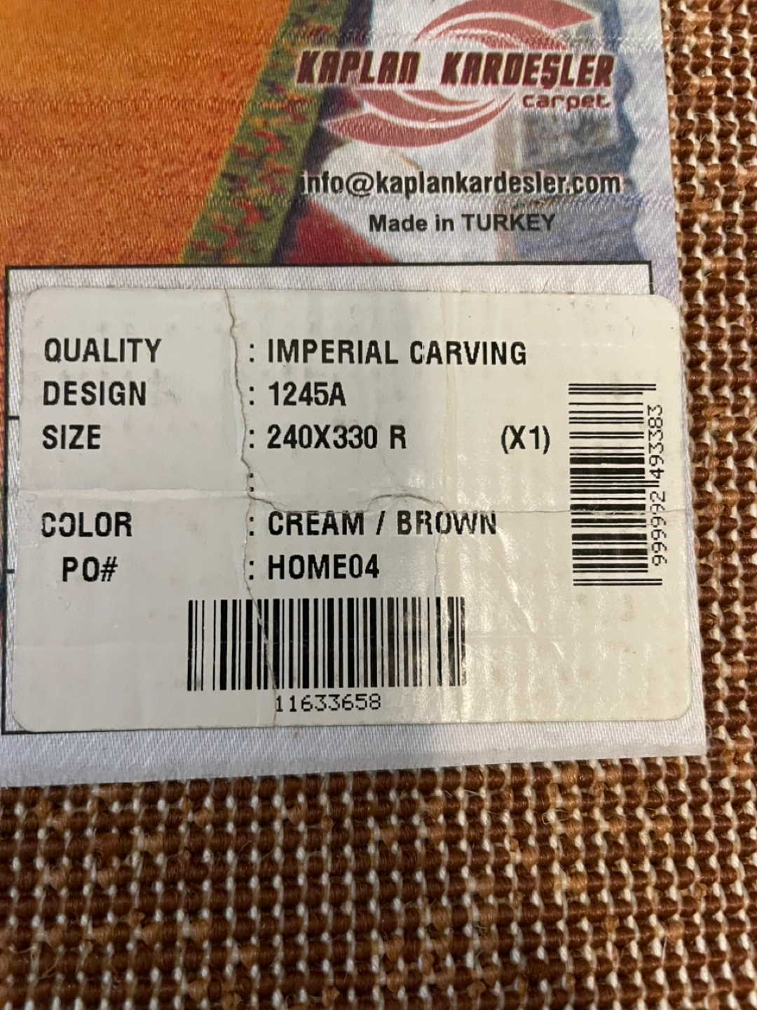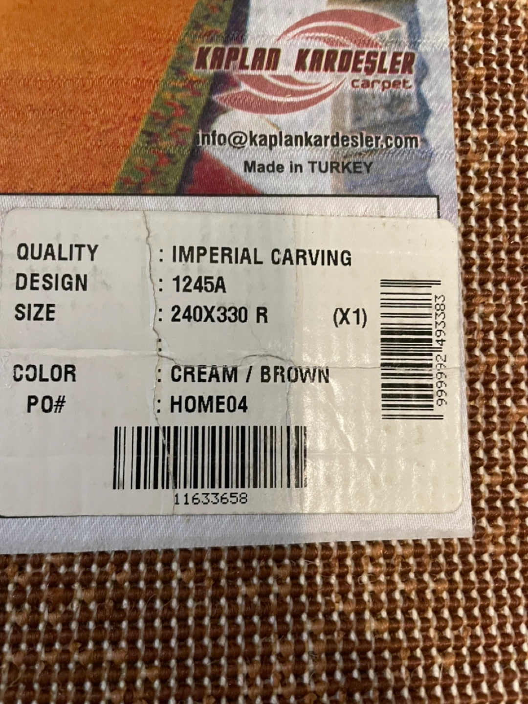 Selling a Kaplan Kardesler carpet in cream and brown.