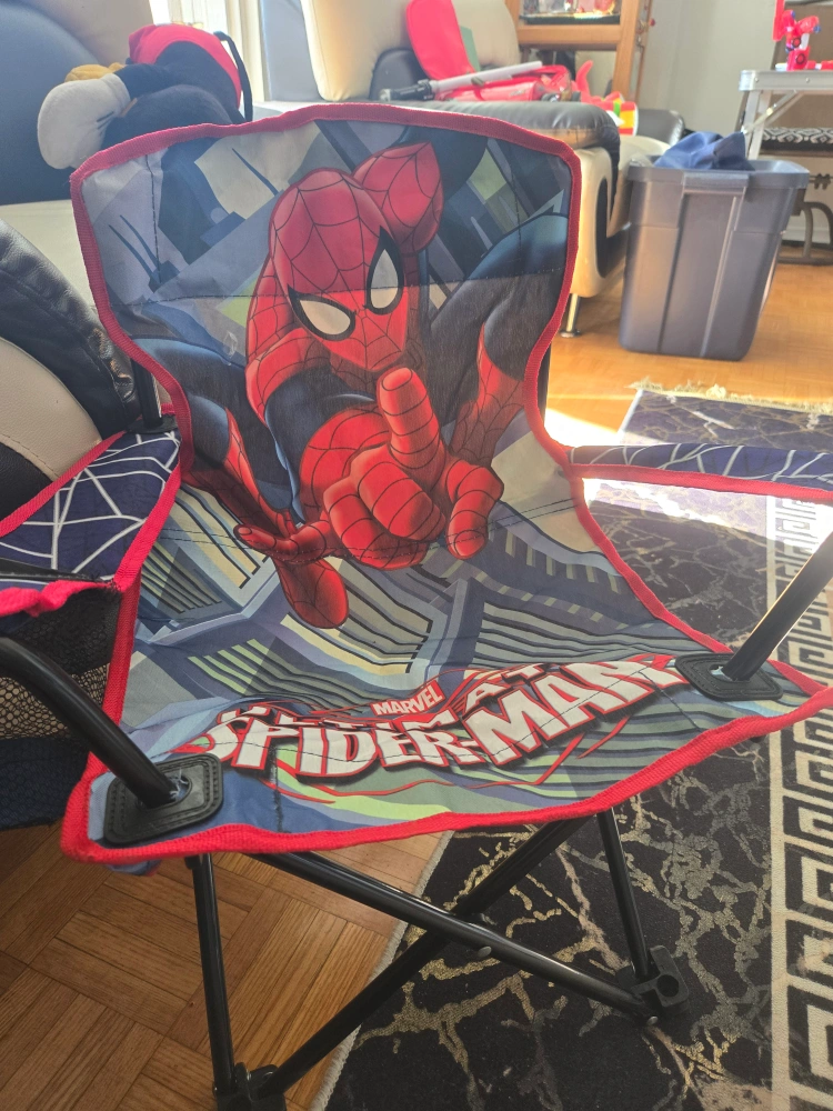 Check out this fun Marvel Ultimate Spider-Man camping chair for kids! It's perfect for outdoor adventures, picnics, or just hanging out in the backyard. The chair features a colourful Spider-Man design and a convenient cup holder come with a bag . pick in north york Victoria and rowena dr.