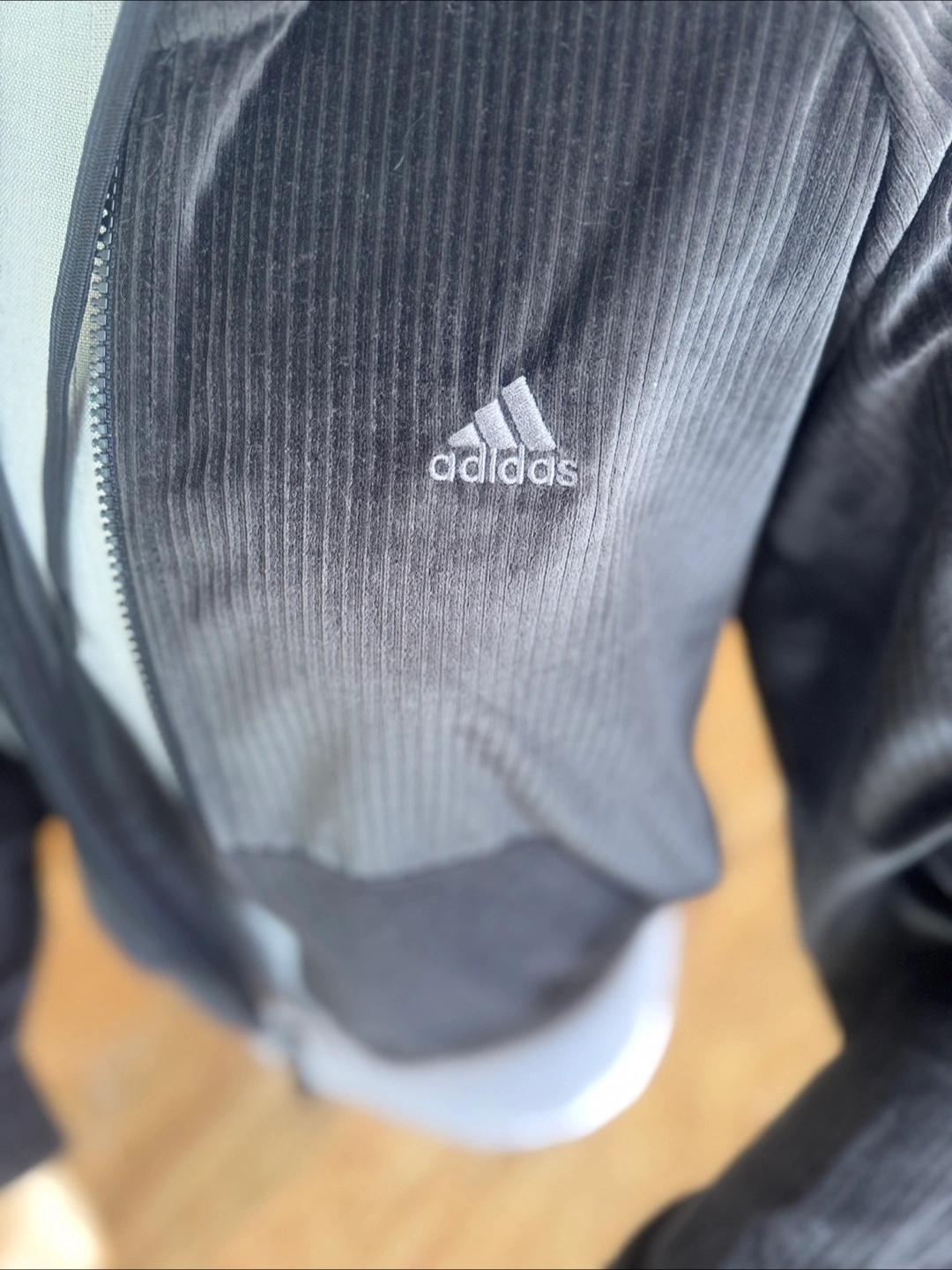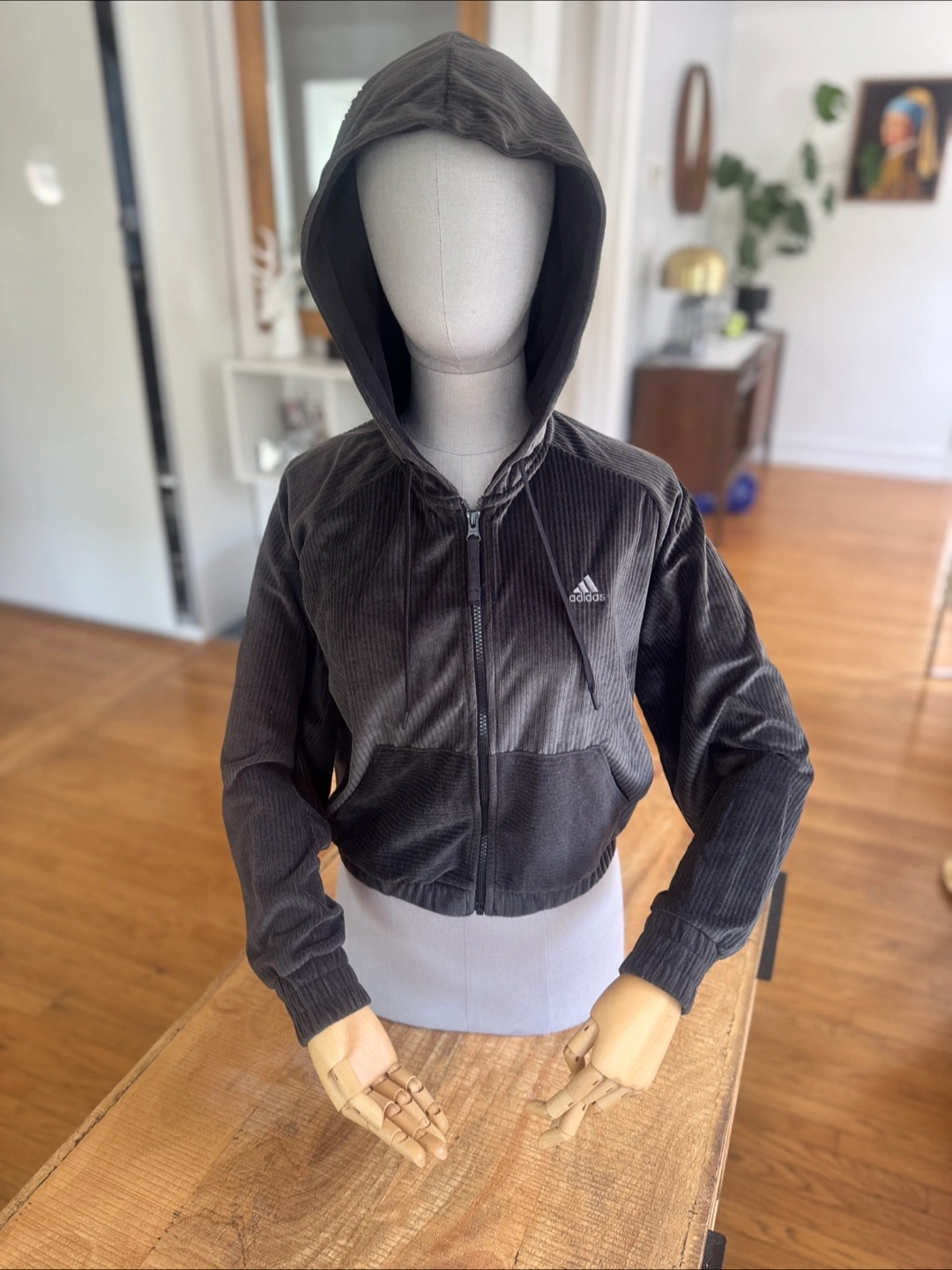 Selling a cute Adidas charcoal corduroy cropped jacket. It's a size Small and in great condition. Perfect for layering or wearing on its own! Pickup at Long Branch location Reasonable offers