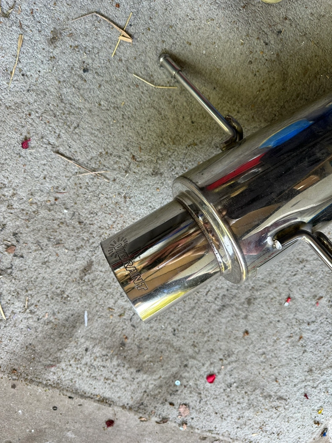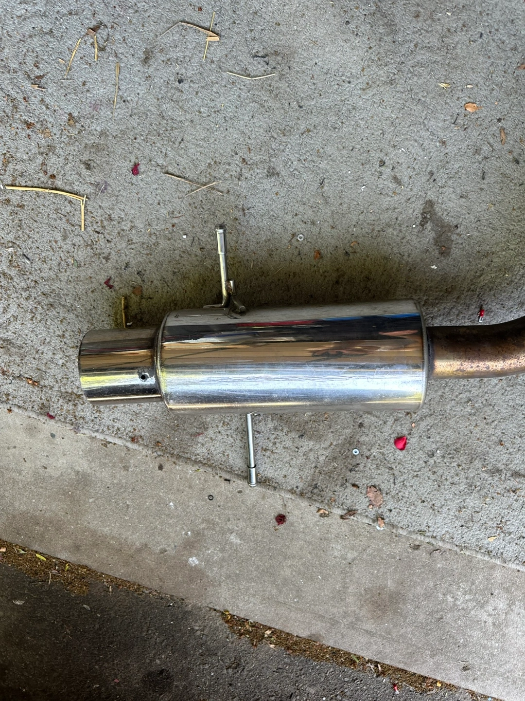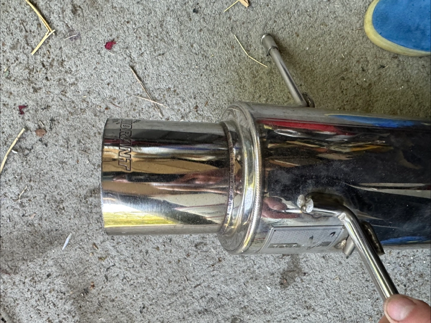 Selling my Vibrant Performance Type-V Japan Muffler exhaust axleback. Sounds amazing Flanges 2 bolt flange from midpipe 4.5” cannon 4” exit 3” piping to muffler