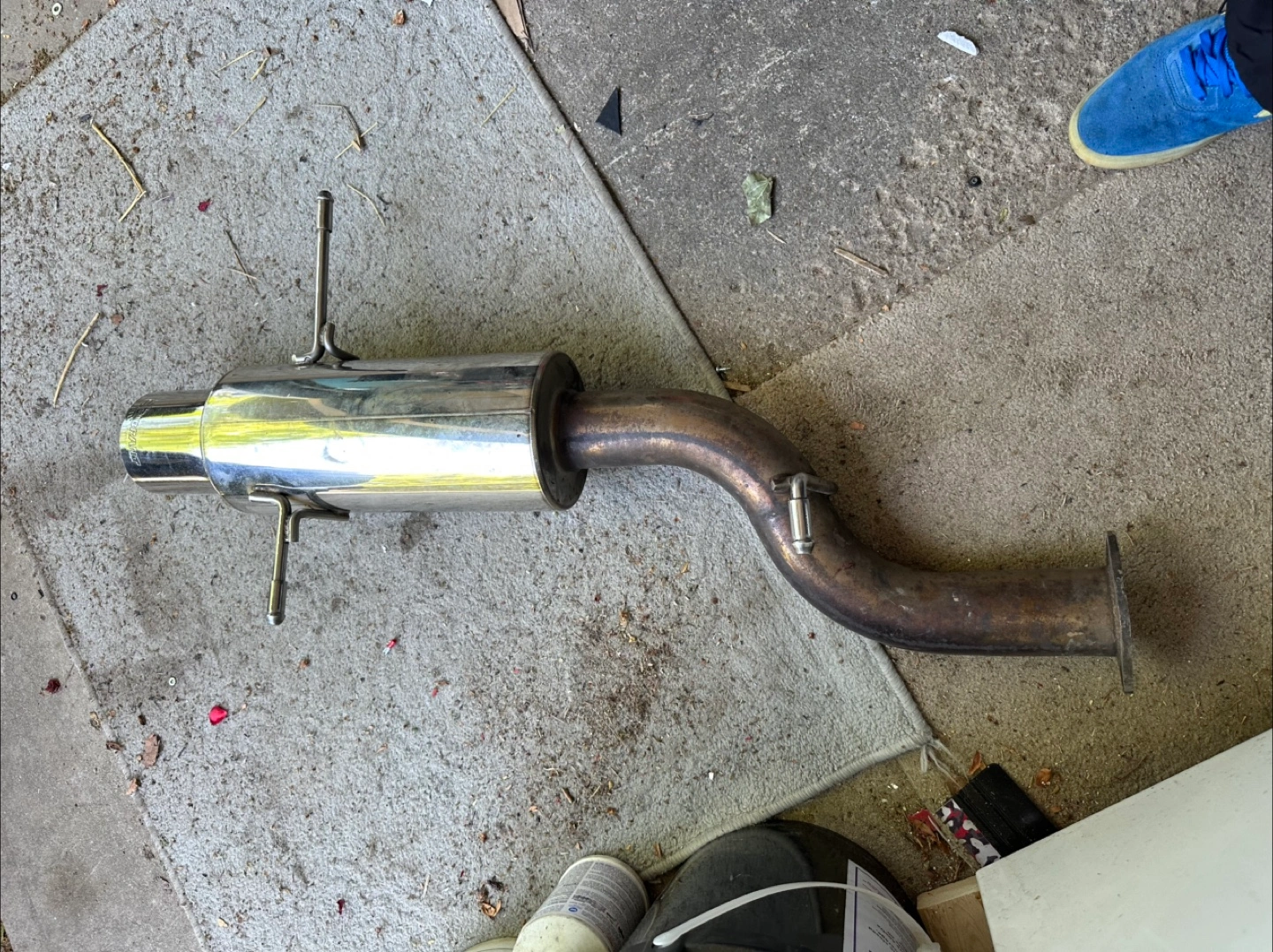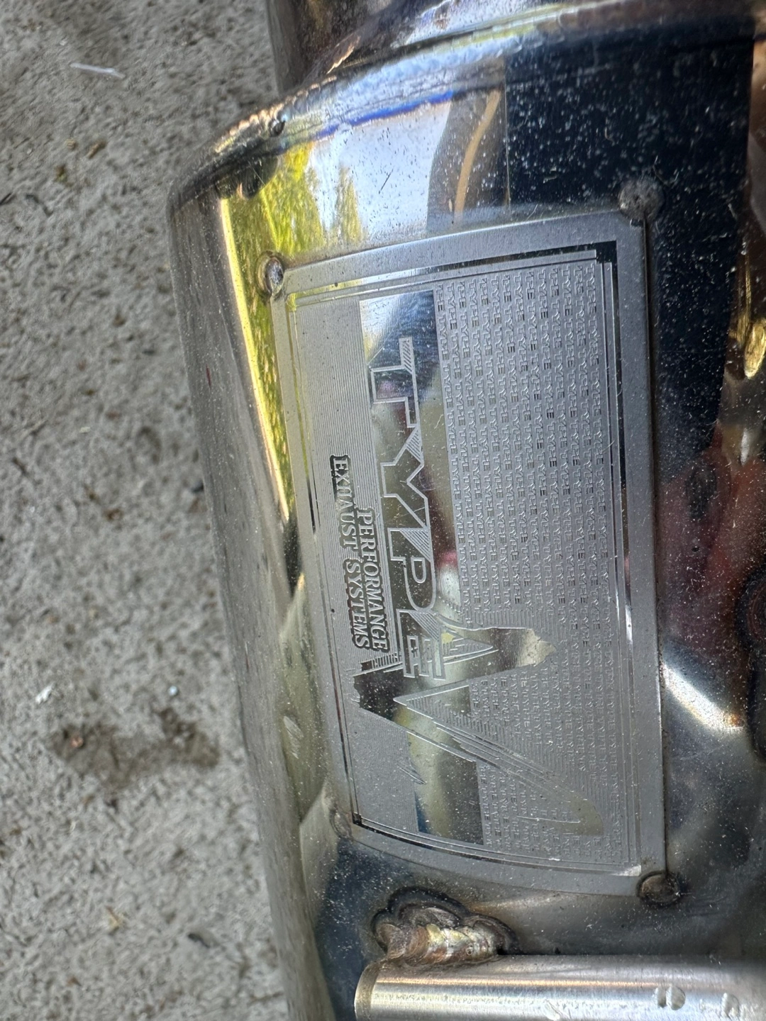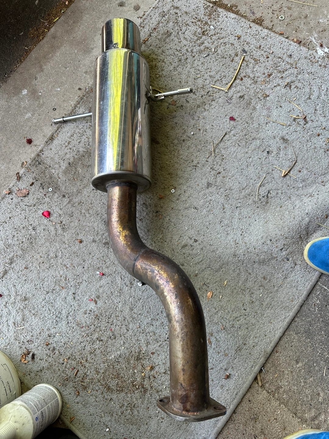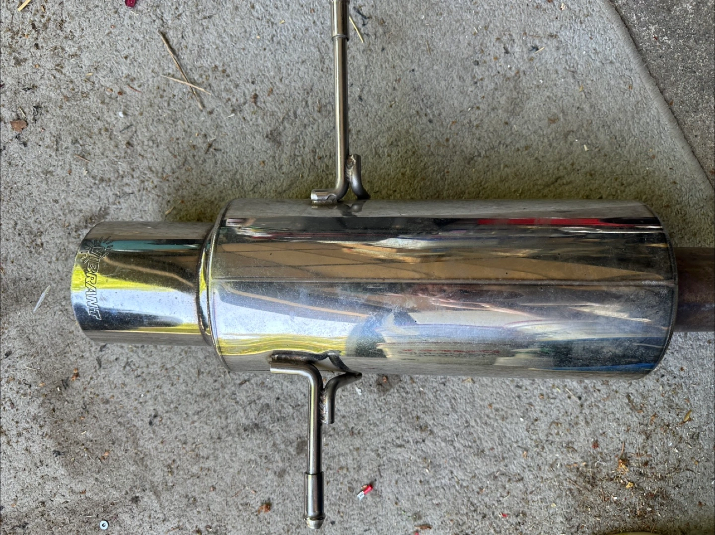 Selling my Vibrant Performance Type-V Japan Muffler exhaust axleback. Sounds amazing Flanges 2 bolt flange from midpipe 4.5” cannon 4” exit 3” piping to muffler