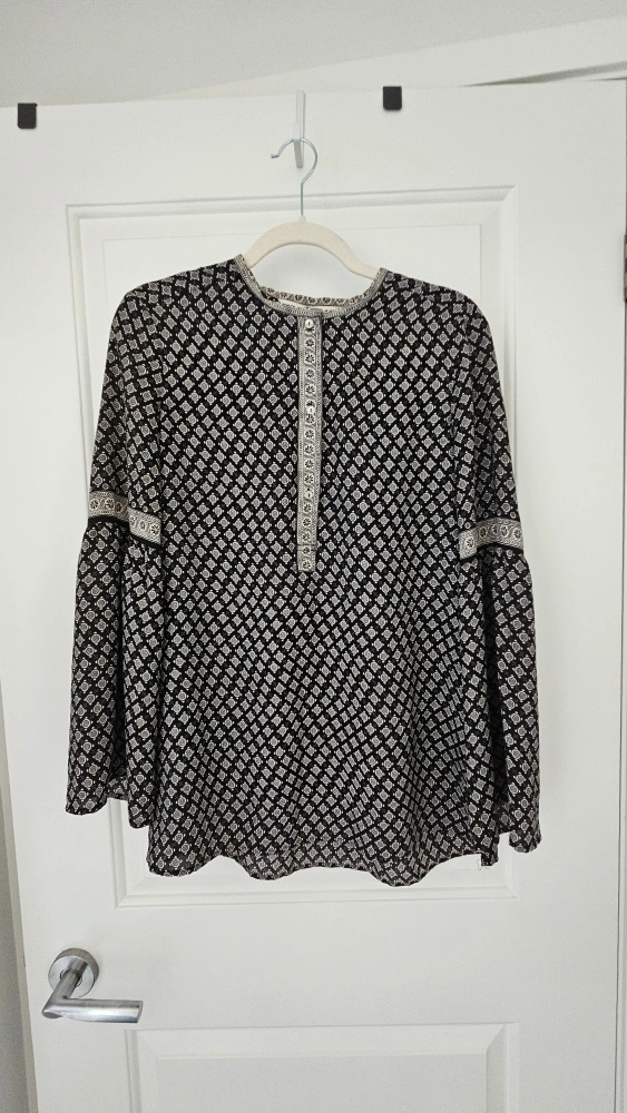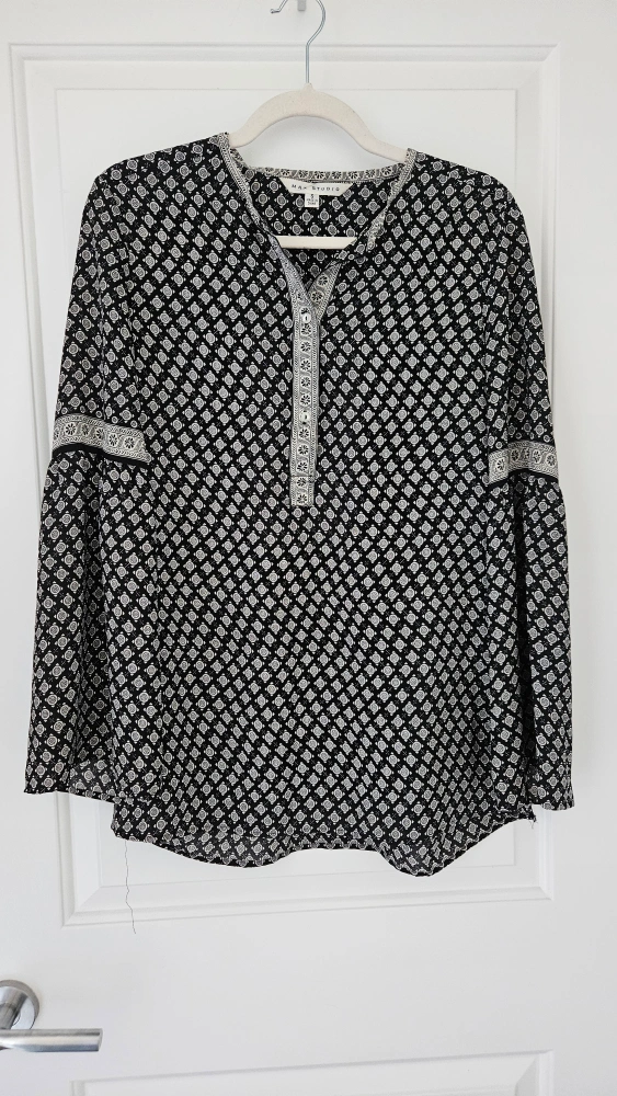 Negotiable - This is a cute Max Studio blouse in size small! It features a black and white geometric pattern and has long sleeves with a slight bell shape. Perfect for both work and for a casual work! Virtually new.