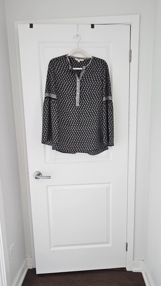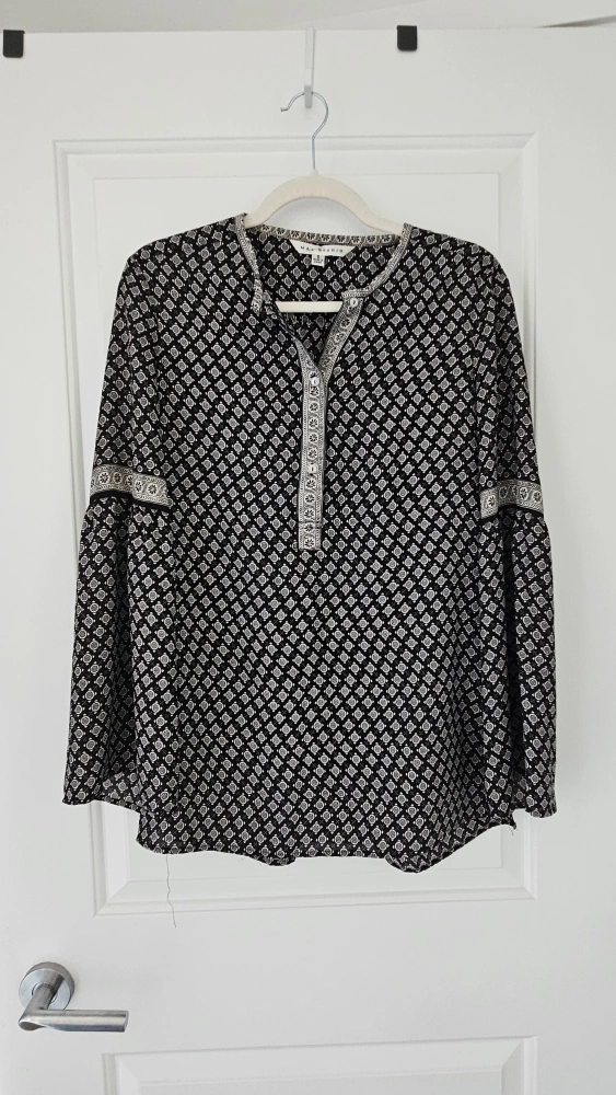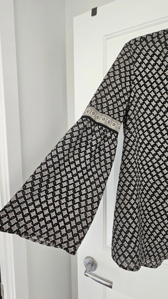 Negotiable - This is a cute Max Studio blouse in size small! It features a black and white geometric pattern and has long sleeves with a slight bell shape. Perfect for both work and for a casual work! Virtually new.