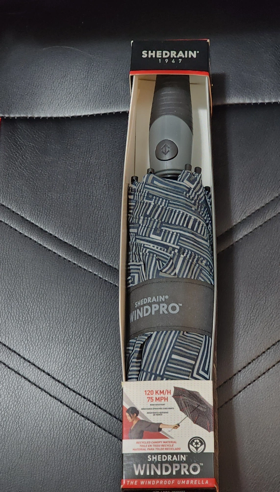 Selling a brand new Shedrain Windpro umbrella, still in its original box! This windproof umbrella is designed to withstand up to 120 km/h or 75 mph. It also features a recycled canopy material, making it a sustainable choice.