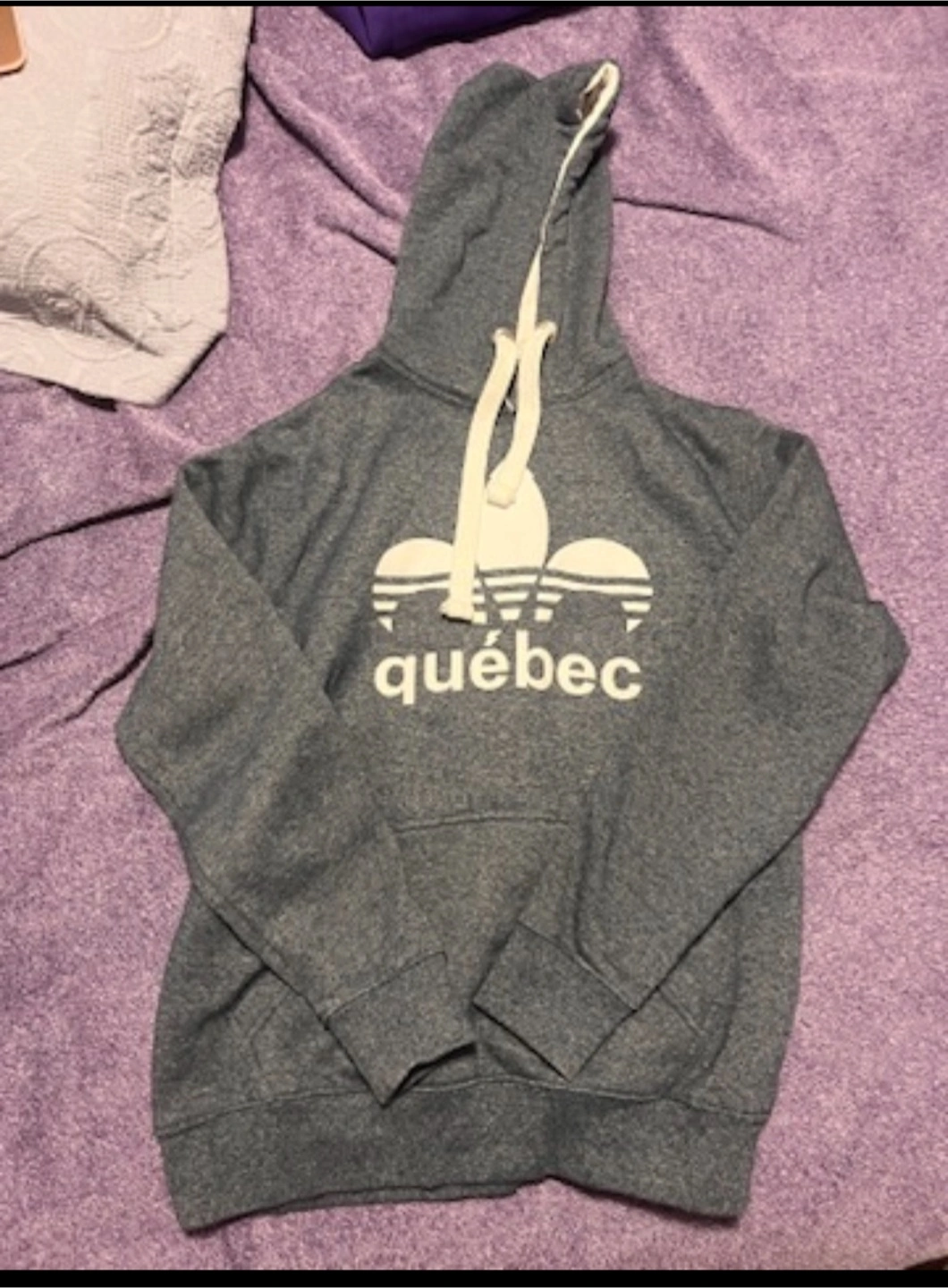 Selling a grey Adidas hoodie with the Québec logo. It's in great condition and super comfy for those chilly days!
