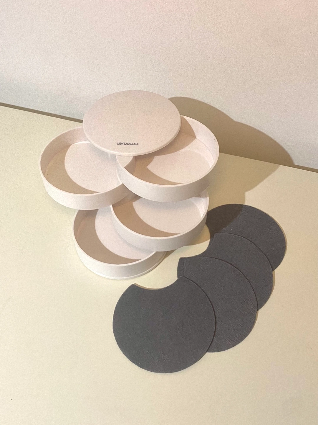 White jewelry organizer with 4 adjustable tiers and no damage, like new. Comes with removable felt pads to protect jewelry from scratching.
