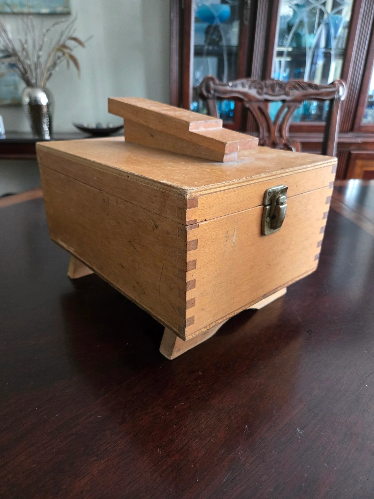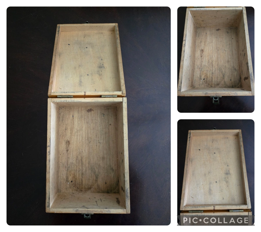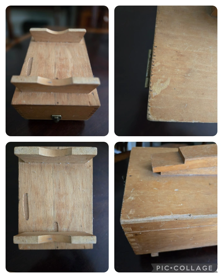 Measures 10 3/4" long x 7 3/4 wode x 9" high. Dove tail, brass hardware. Scratches and nicks pu Annadale