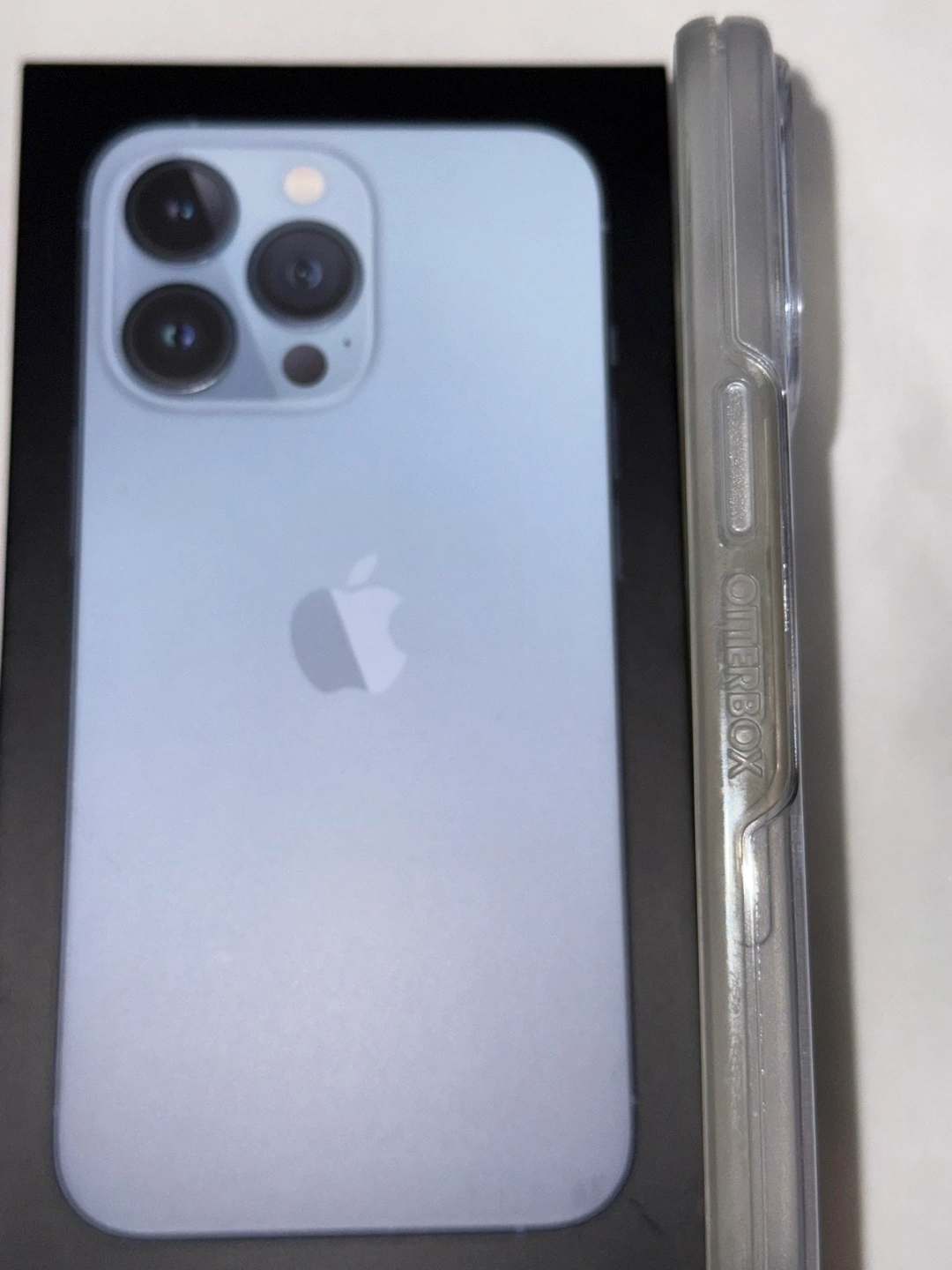 SELLING LIKE NEW BLUE IPHONE 13 PRO 128 GB. UNLOCKED. Only used for one year. Great battery health (88%) and no scratches. Iphone comes with Original Box, Apple Charging Cable and Otterbox Case. Privacy Screen tempered glass screen protector included.