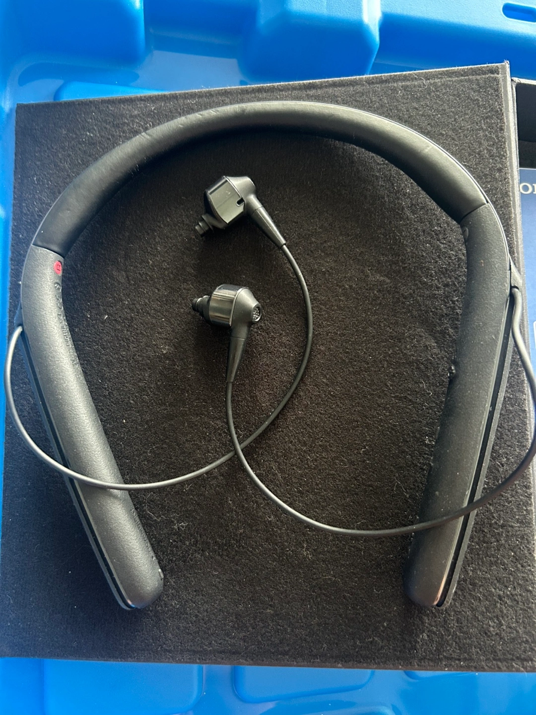 Barely used wireless noise cancelling earbuds on neckband. Comes with the original box, pouch, and all accessories, includes various earbud sizes (I removed the used earbuds), charging cable and adapter plug for in-flight use.