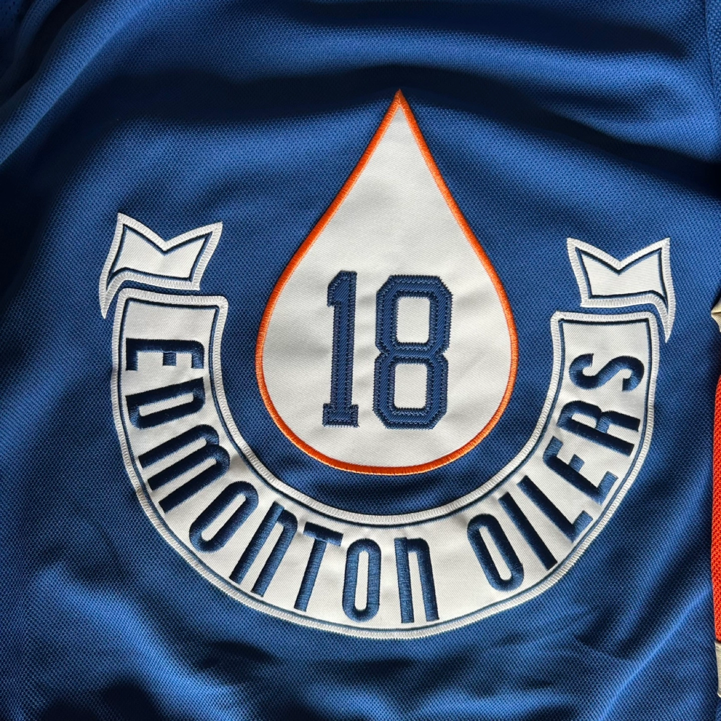 Selling an Edmonton Oilers jersey featuring Hyman #18! It's a size 46 and in great condition. The jersey commemorates the 2003 Heritage Classic. Perfect for any Oilers fan!