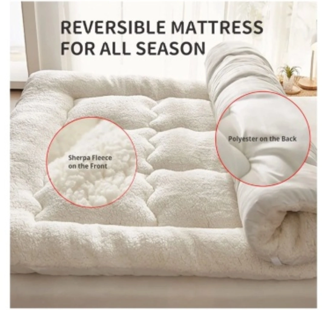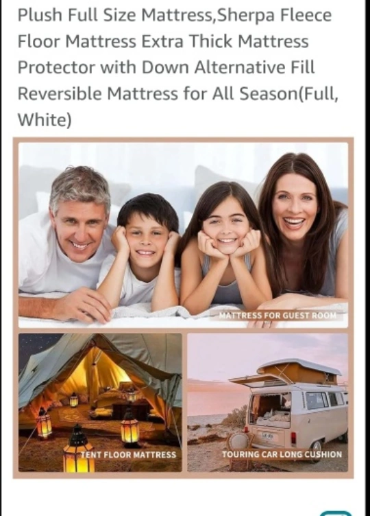 Looking to add some extra comfort to your space? This plush full-size mattress is perfect for guest rooms, tent floors, or even as a touring car long cushion. It features sherpa fleece on the front and polyester on the back, making it reversible for all seasons!