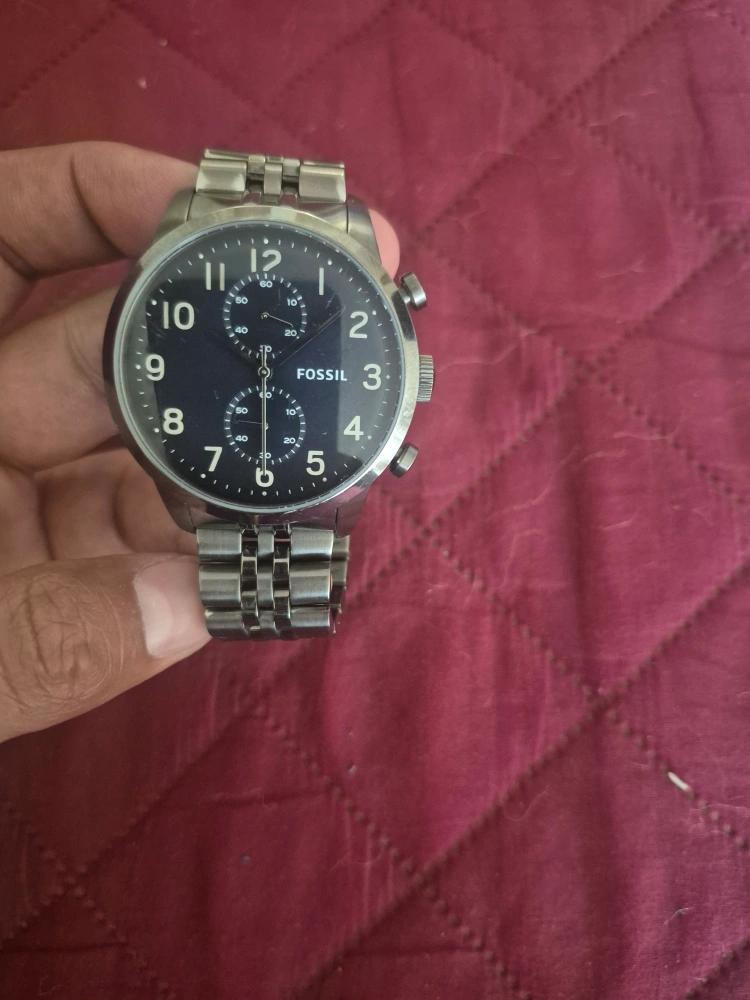 Blue face, fossil watch don't have use for it was given to me for a trade. Needs new battery. Selling in fair condition.
