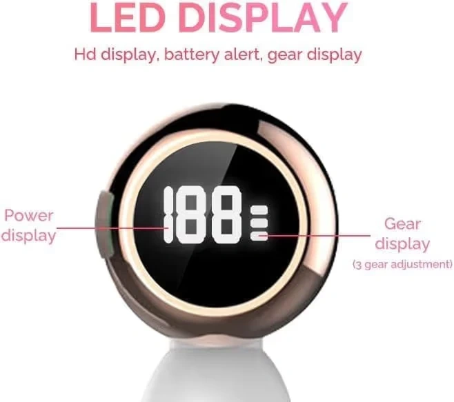 This multifunctional cleansing brush comes with six interchangeable heads for various skincare needs. It's IPX6 waterproof and features a 1000 mAh battery with a 2-hour charging time. The device offers 3 adjustable speeds and an LED display for settings.