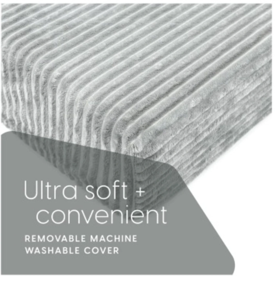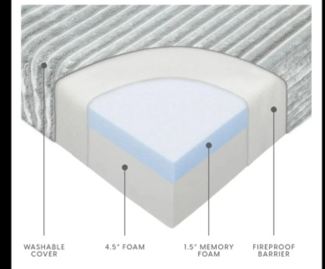 It features an ultra soft and washable ribbed fur cover. The dimensions are 38" x 75" when used as a mattress. The foam is 4.5" thick and there is also 1.5" of memory foam!