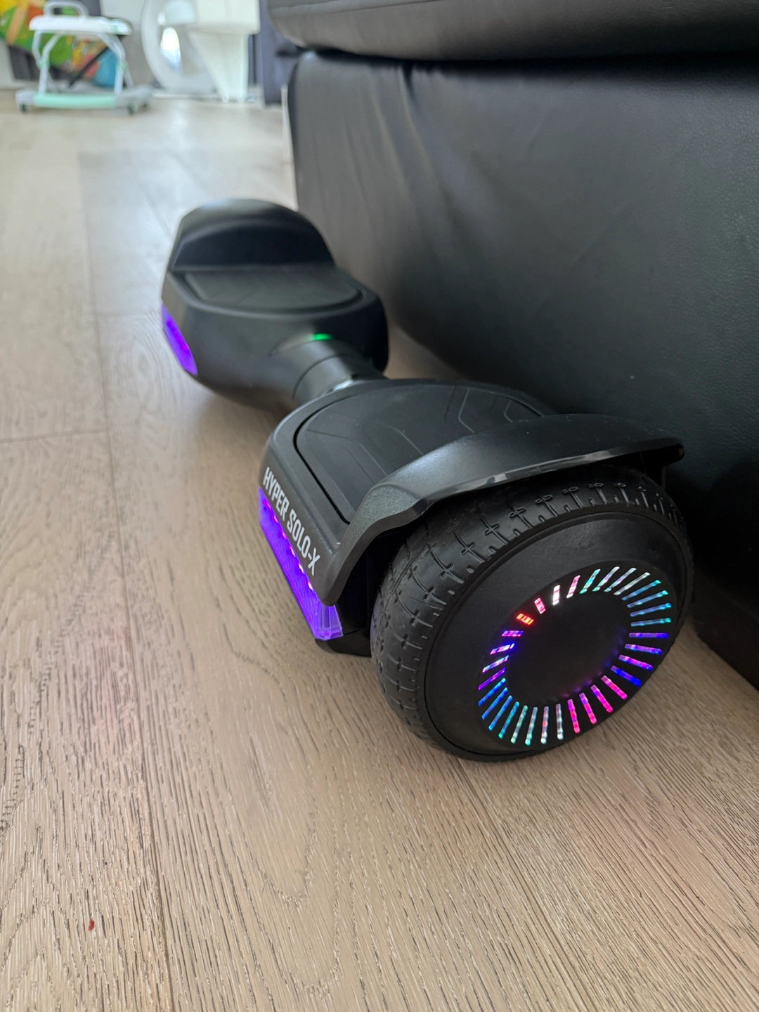 Selling a Hyper Solo-X electric hoverboard. It's in great shape and ready for some fun rides! Comes with the original box. The box says it has a top speed of 10km/h and a charge time of 4-5 hours