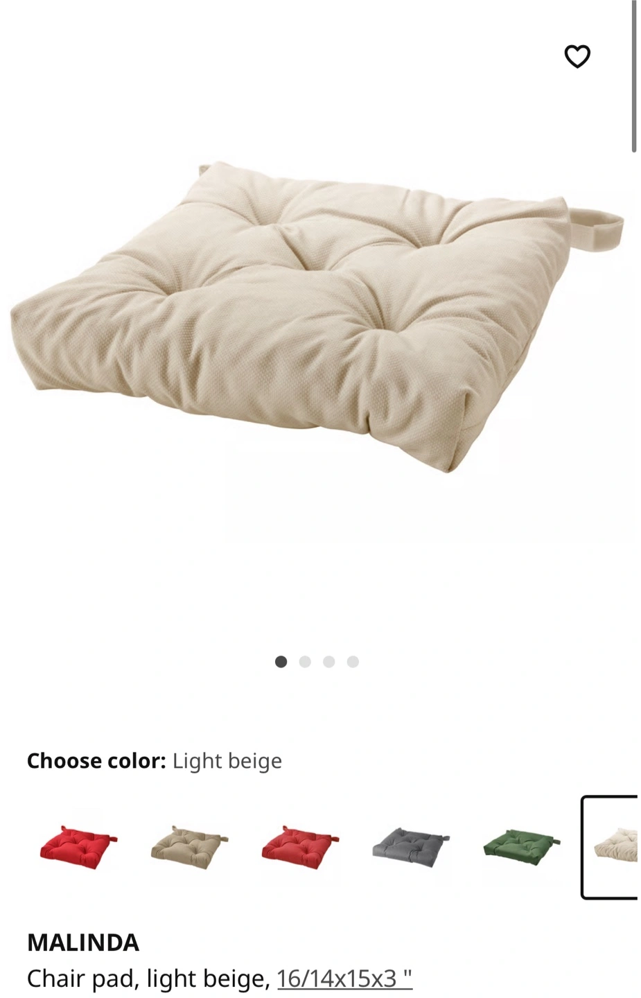 Selling a light beige IKEA MALINDA chair pad. It measures 16/14x15x3 inches and is in great condition. Perfect for adding a little comfort to your chairs!