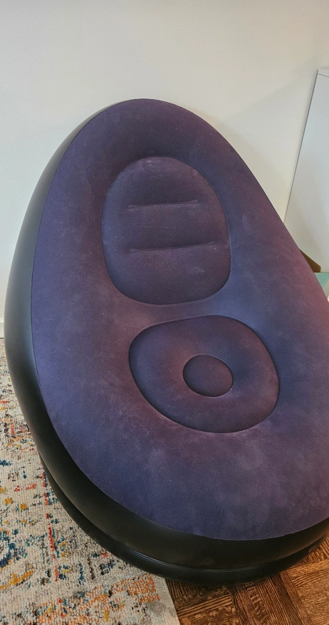 Selling a comfy inflatable egg lounge chair! It's in great shape and perfect for relaxing. The chair is a cool purple colour and has a unique, modern design. Dimensions are approximately 41.4 inches (105cm) in length and 29.92 inches (76cm) in height