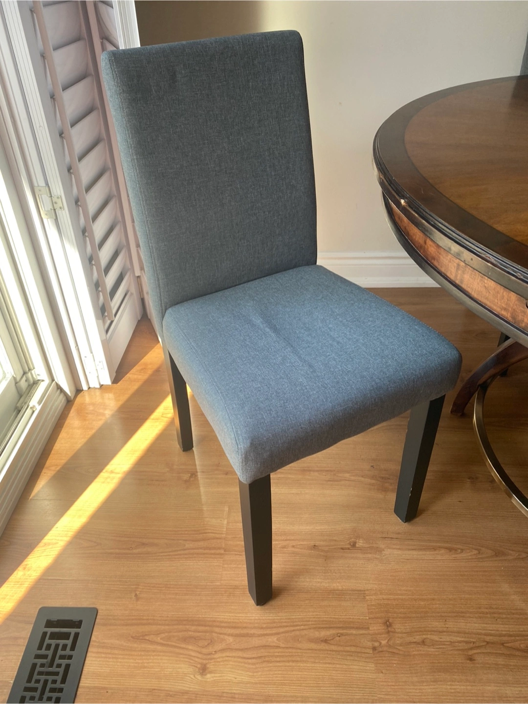 Selling 4 grey upholstered dining chairs. They are in great condition and would look lovely in any dining room or kitchen. Only $10 each. Pick up in Brampton
