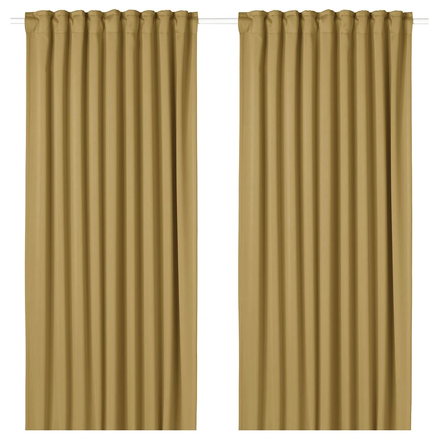 Selling a pair of IKEA Majgull room darkening curtains in beige-yellow. They come with heading tape and measure 145x250 cm (57x98 "). Add warmth to any room!