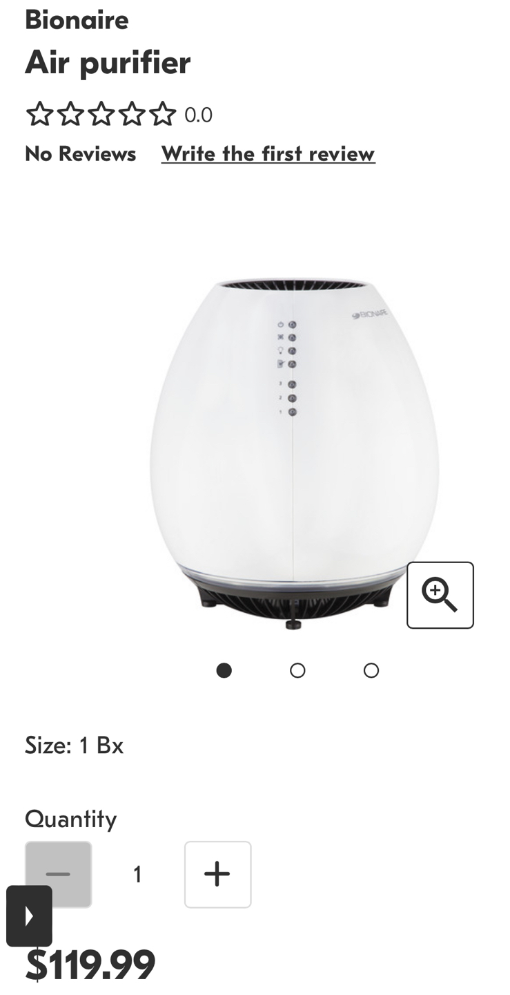 ‘Operates quietly to help remove up to 99% of airborne particles such as pollen, dust, mold spores pet dander and smoke, providing relief from irritants in the air.’