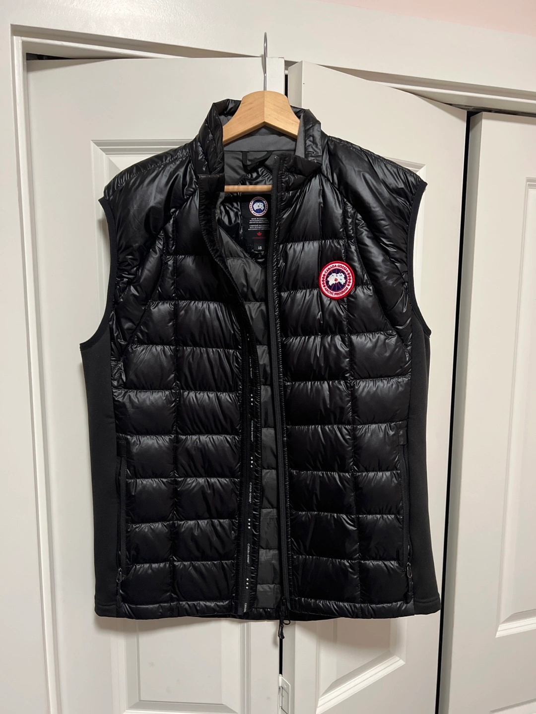 Selling a Canada Goose down vest in black, size large. It's in great condition and perfect for layering during the cooler months. The vest features the iconic Canada Goose logo. Feel free to message me with any questions!