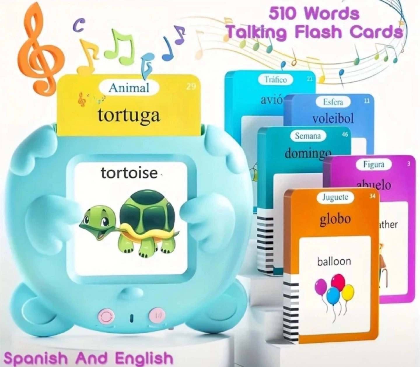 Helps with early language learning, pronunciation, and fun sound effects. Comes with a rechargeable battery and volume control. Perfect for toddlers and preschoolers! ¡Nuevo, nunca usado! Lector interactivo de tarjetas flash parlantes para niños con 510 palabras en inglés y español. Ayuda con el aprendizaje temprano del idioma, la pronunciación y efectos de sonido divertidos. Viene con batería recargable y control de volumen. ¡Perfecto para niños pequeños y preescolares!