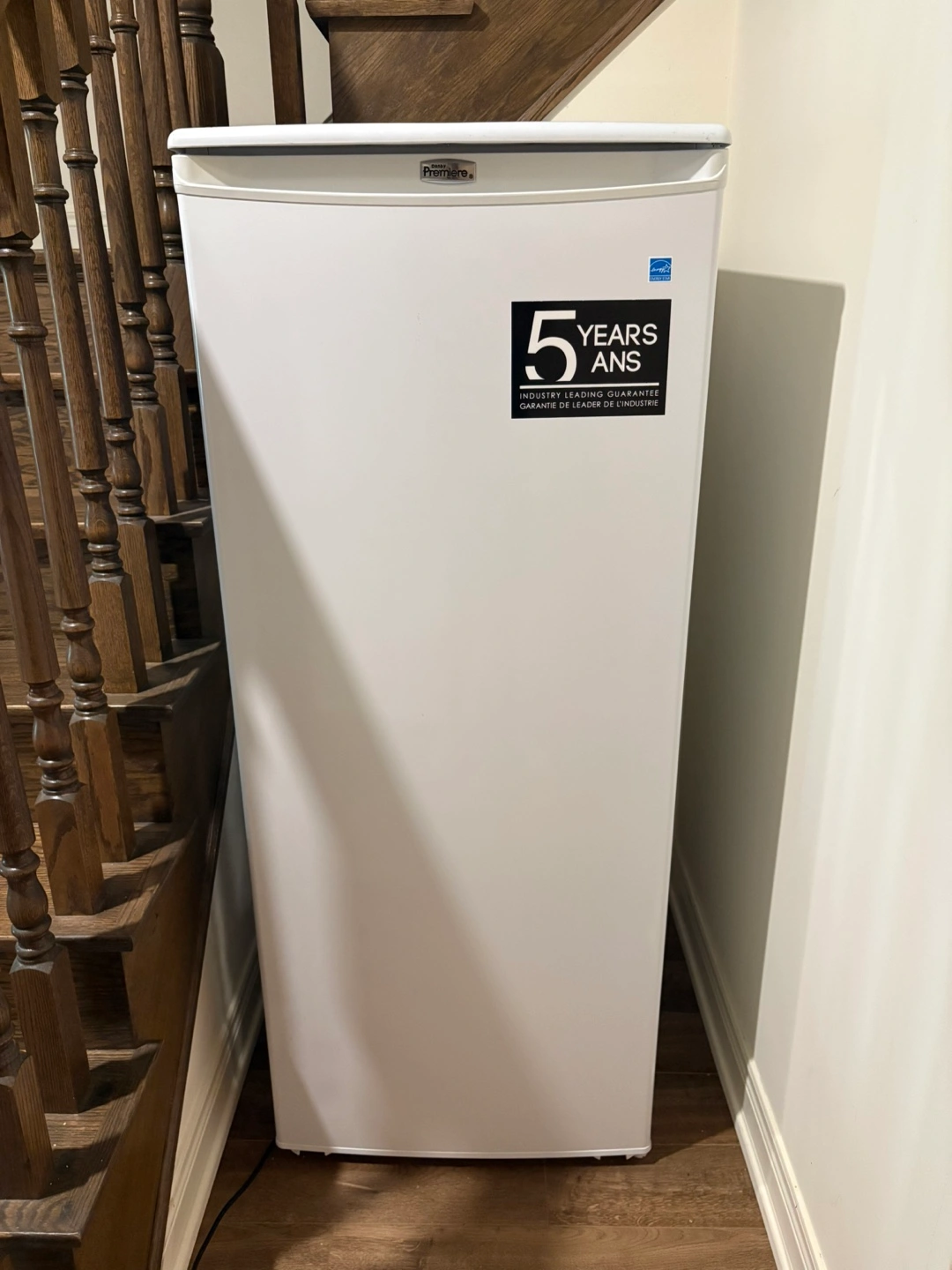 Selling a Danby Premiere upright freezer in white. It's in great condition and ready to keep your food frozen solid. This freezer has a 5-year industry-leading guarantee.