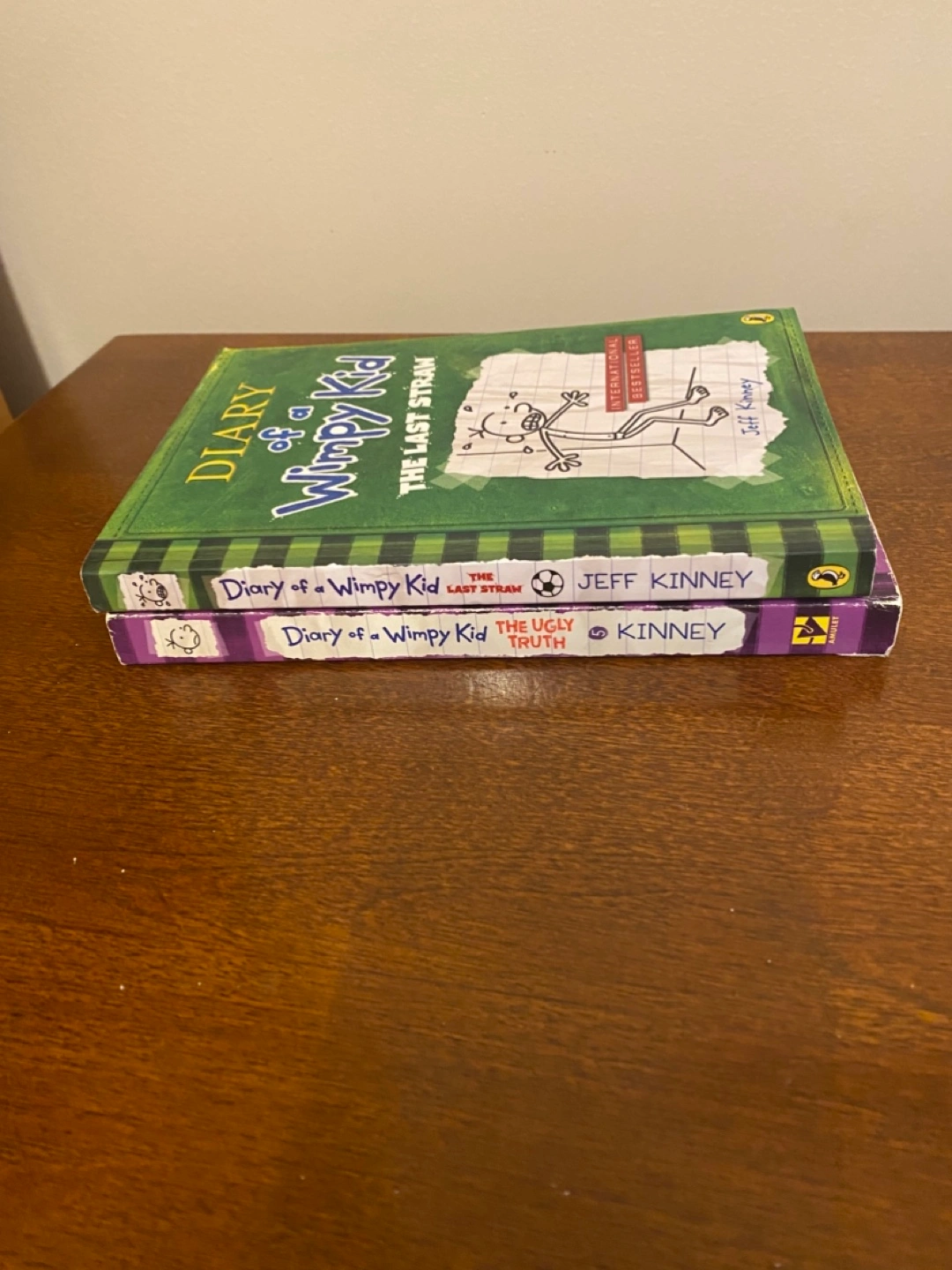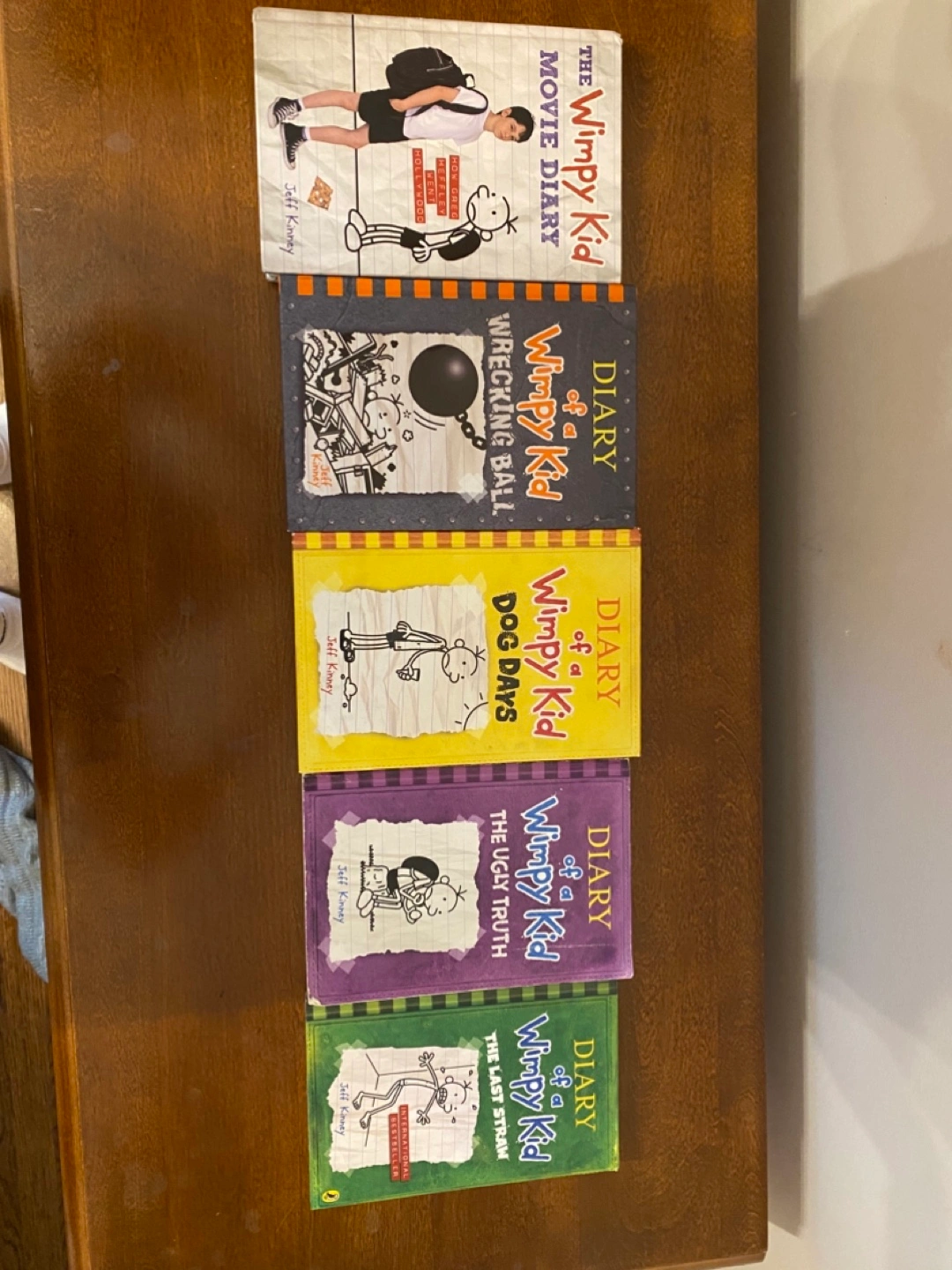 375Selling a set of Diary of a Wimpy Kid books by Jeff Kinney! Titles include: - The Last Straw (paperback) - The Ugly Truth (paperback) - Dog Days (hardcover) - The Movie Diary (hardcover) SOLD Wrecking Ball (hardcover) Please refer to pictures for details and condition. Asking: $3 per paperback $5 per hardcover Or all 4 for $10 Comes from a clean, smoke free and pet free home. Must be able to pick up. Location is around 401 and Allen rd. Practicing contactless porch pick up.
