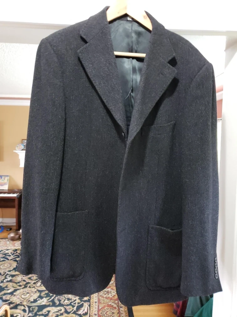 Make an offer, was 18, for this men's blazer in black! It's in great condition and perfect for any occasion. had I zipper inside for asking an additional lining inside