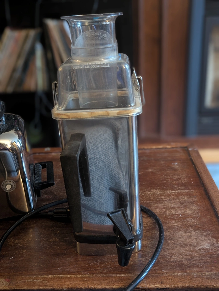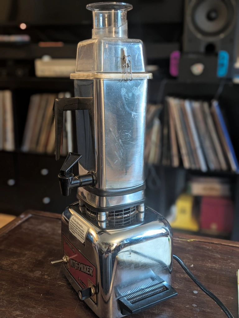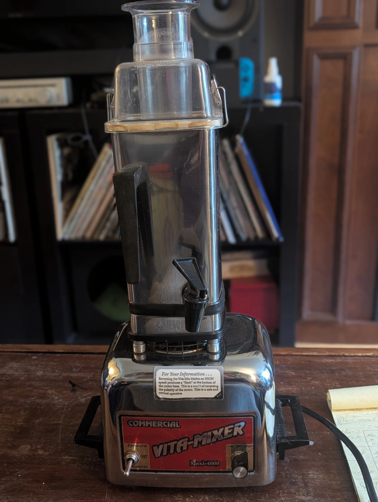 Selling a vintage Vita-Mixer Maxi-4000 commercial blender! It's a real classic and in good working condition. Perfect for someone who appreciates retro kitchen appliances or needs a heavy-duty blender. The tap on the bottom is a fun vintage feature that makes for easy dispensing of smoothies. Selling because we upgraded