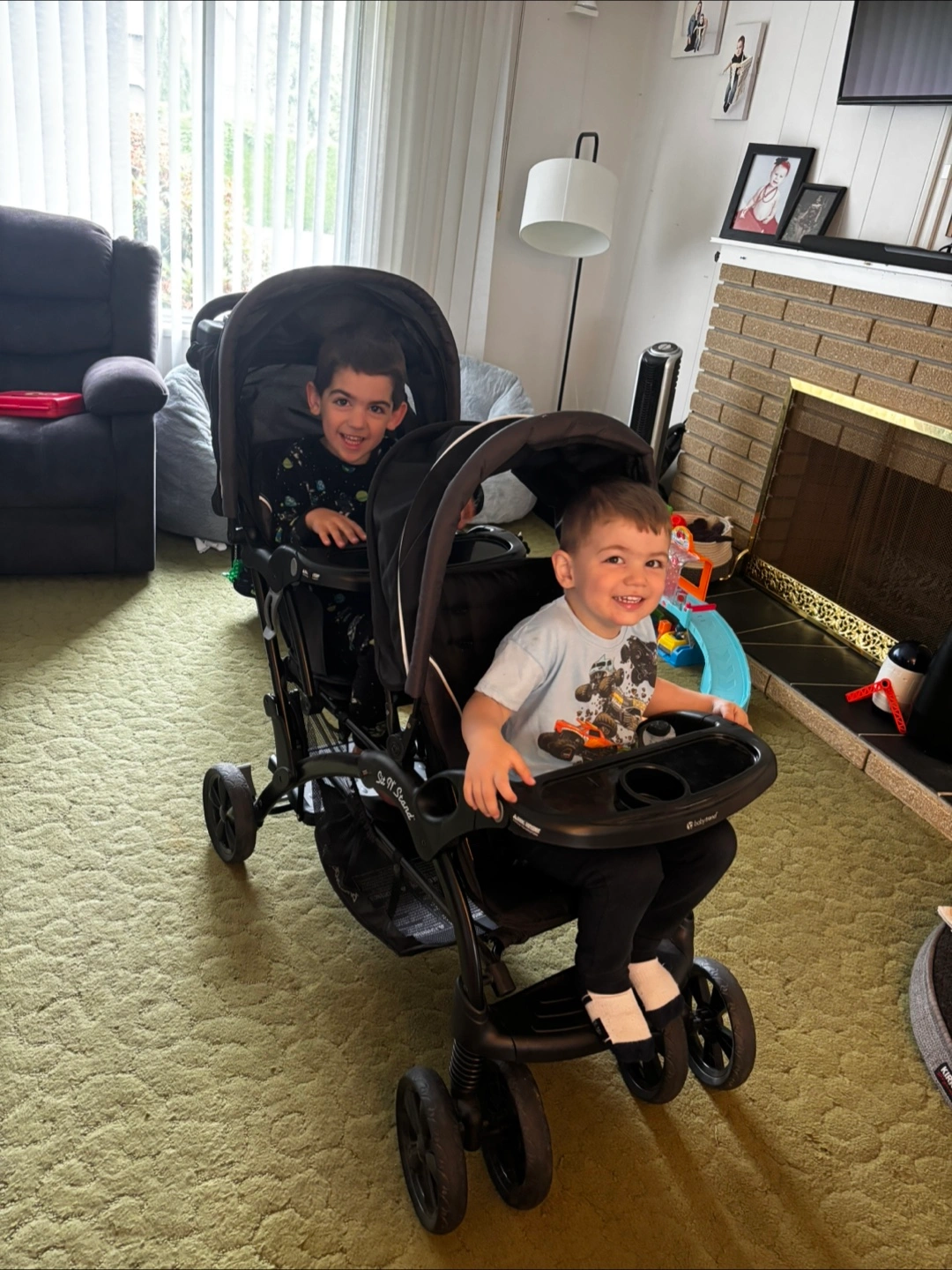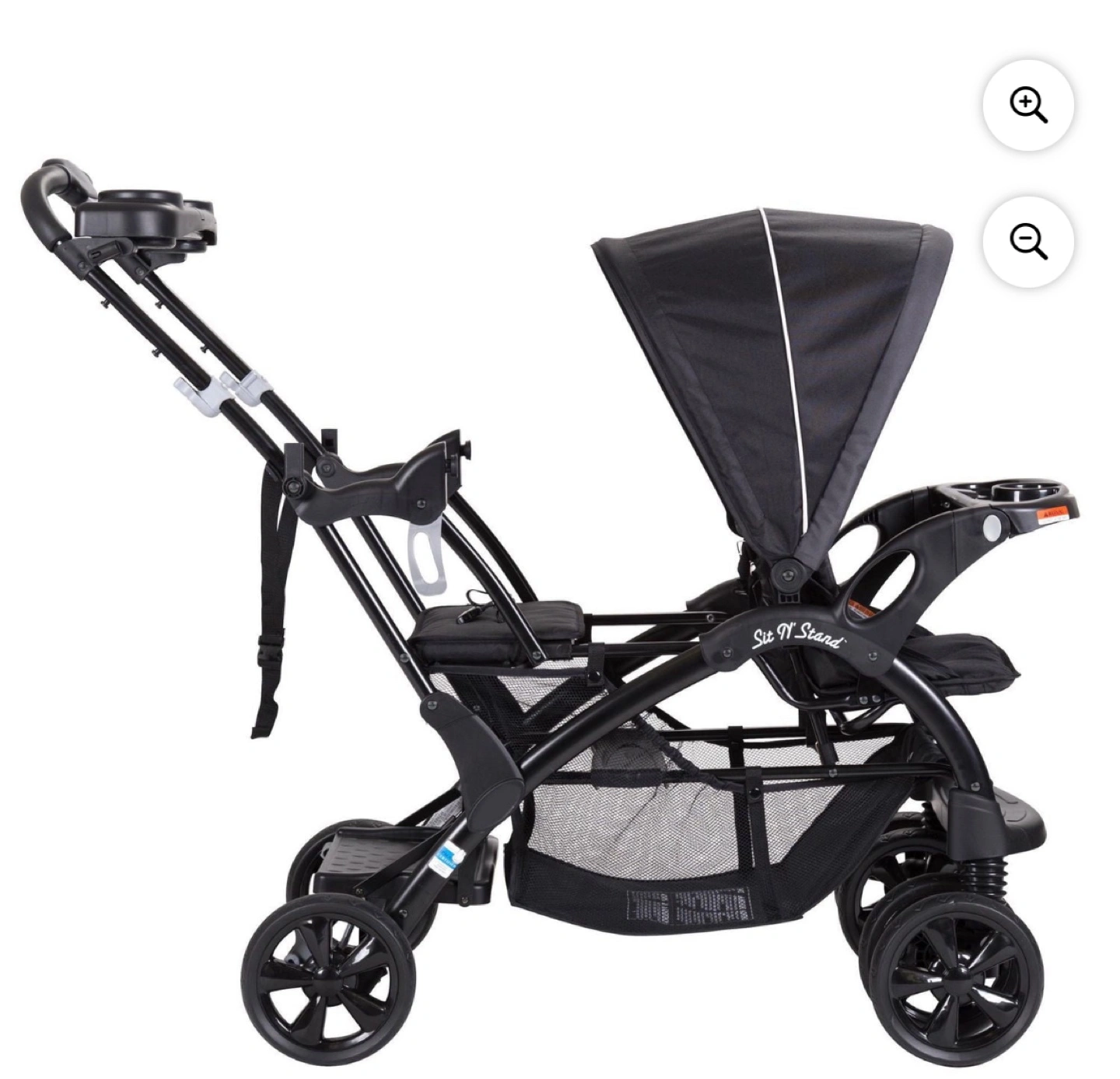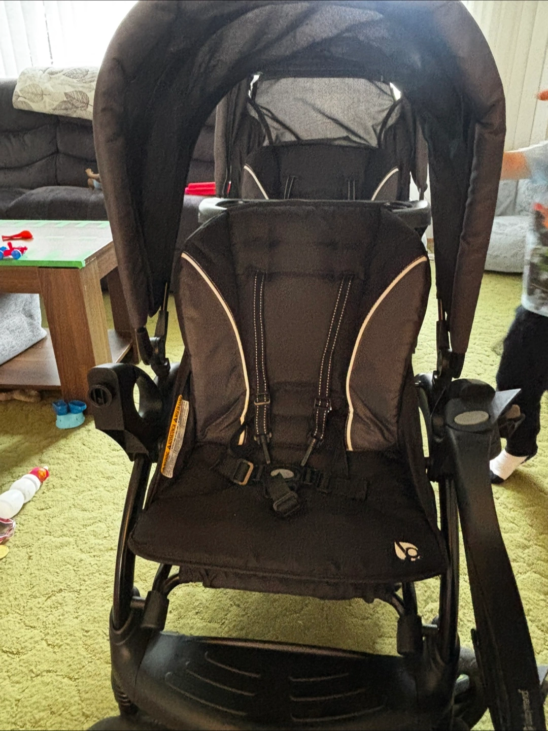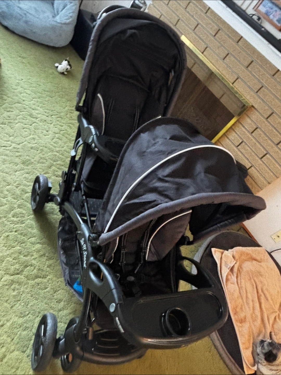 Selling a Baby Trend Sit N' Stand Double Stroller in Onyx! This stroller is perfect for families with two young children. It's a double stroller that offers multiple riding options. Originally bought for $300!