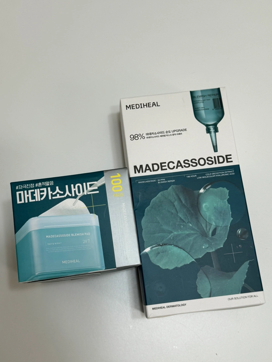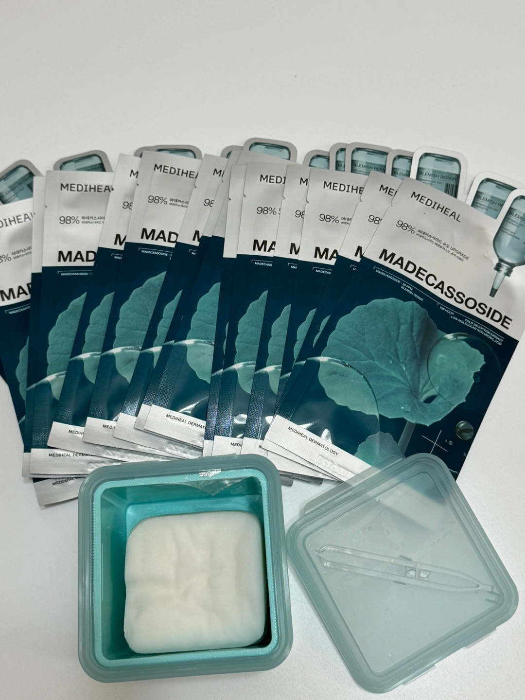 Selling a container of Mediheal Madecassoside Blemish Pads! These are great for soothing and repairing blemishes. They're perfect for both day and night use. Get your skin looking its best!