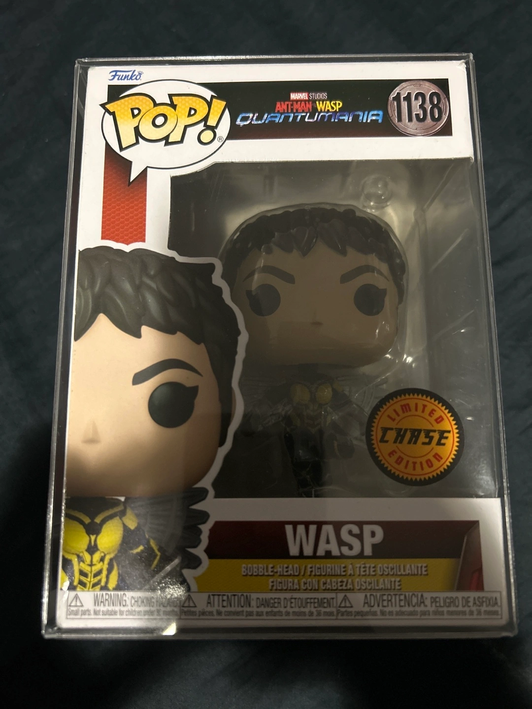 Selling a Funko Pop! of Wasp from Marvel's Ant-Man Quantummania. This is number 1138 and is the Limited Chase Edition. The box is in great condition!