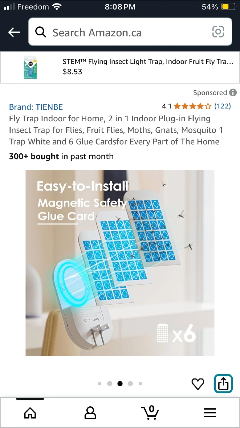 Selling a TIENBE UVA Smart Mosquito Trap, model HW-05! It's a 2-in-1 indoor plug-in flying insect light trap, perfect for flies, fruit flies, moths, and gnats. It attracts flies with UV LEDs and uses triple UVA wavelengths for enhanced results. Easy to install with a magnetic safety glue card. Comes with the box!