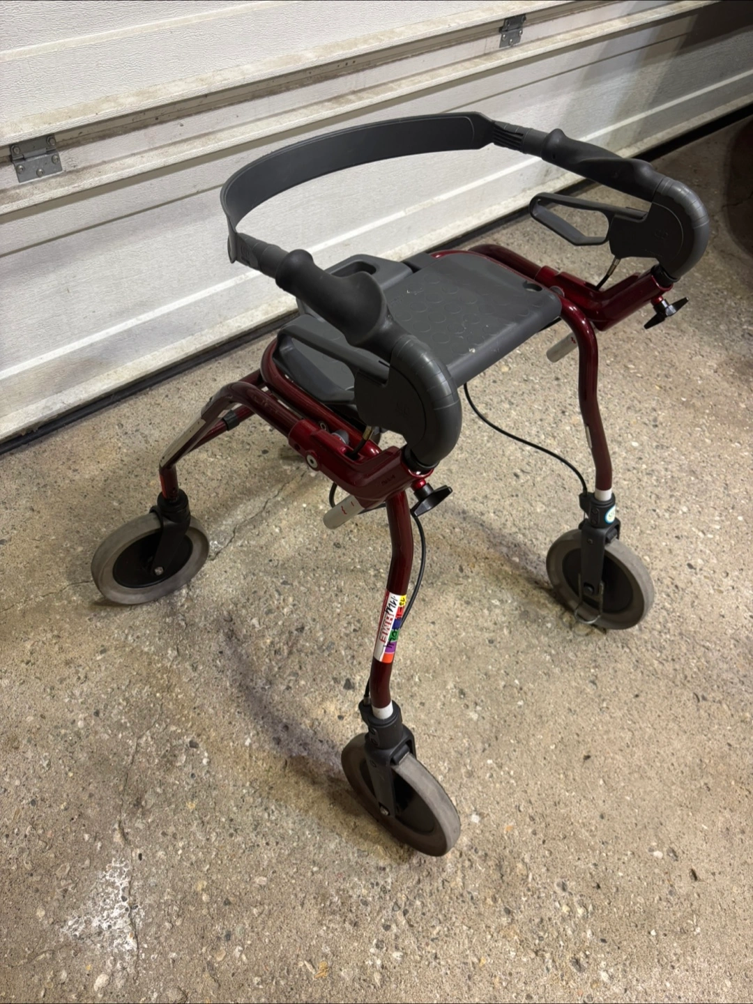 Selling a rollator walker in good condition. It has a seat for resting and is easy to maneuver. Great for anyone needing a little extra support while walking around the neighbourhood!
