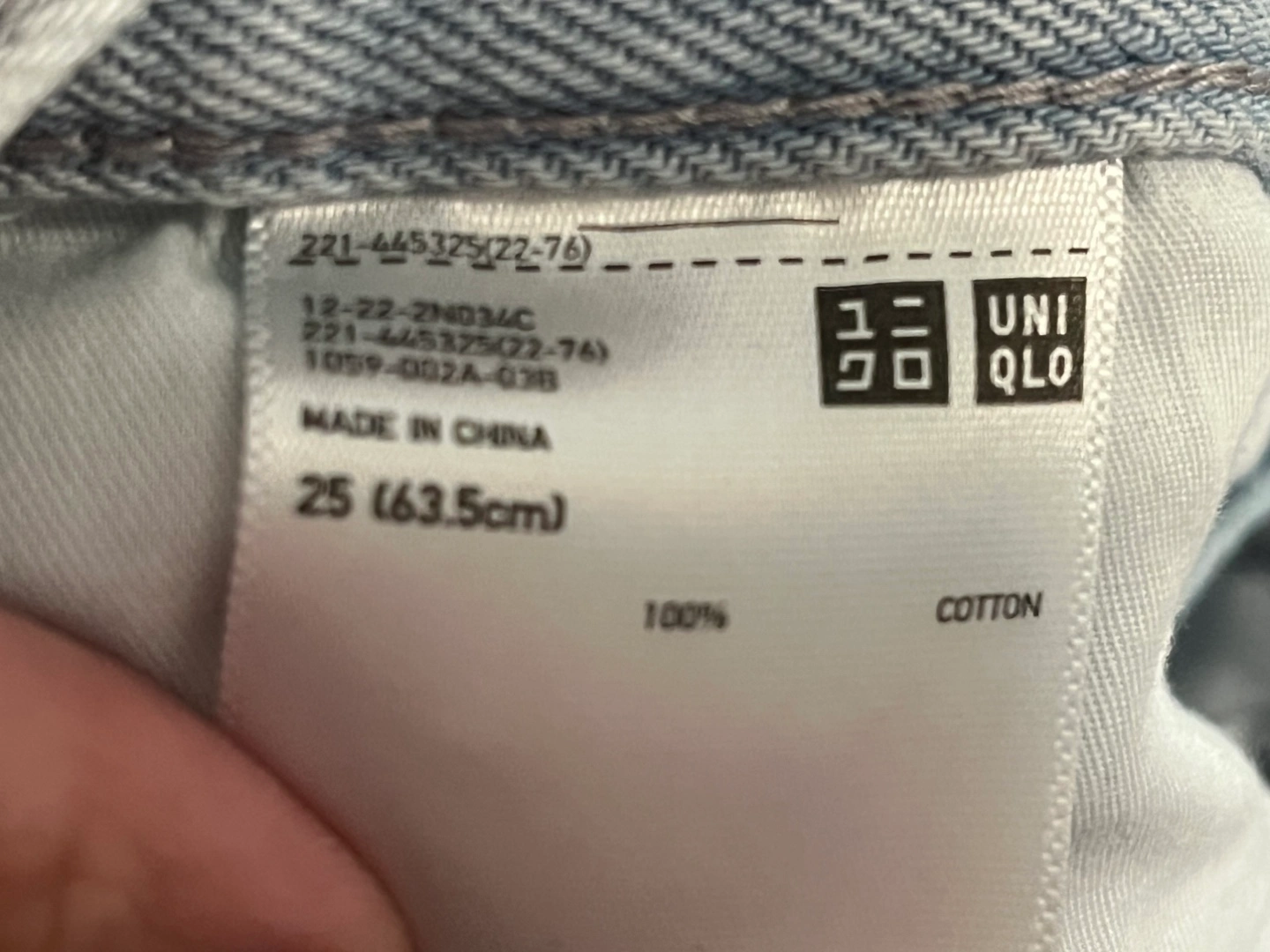 Selling a pair of Uniqlo Jeans denim shorts in size 25 (63.5cm). They're in good condition and made of 100% cotton. Perfect for a casual summer look!