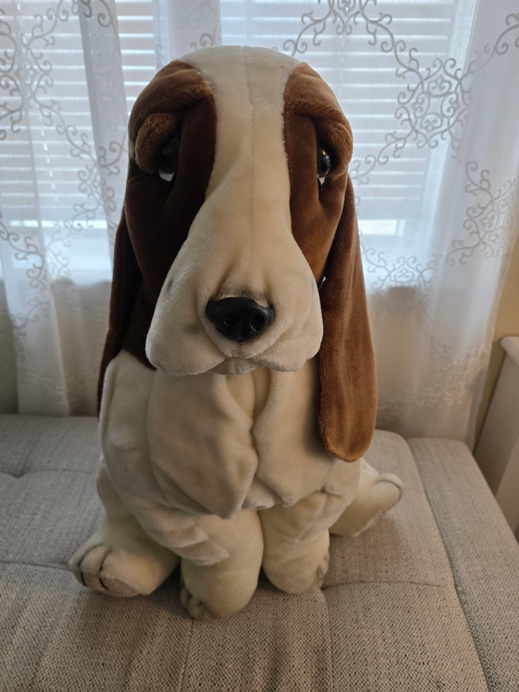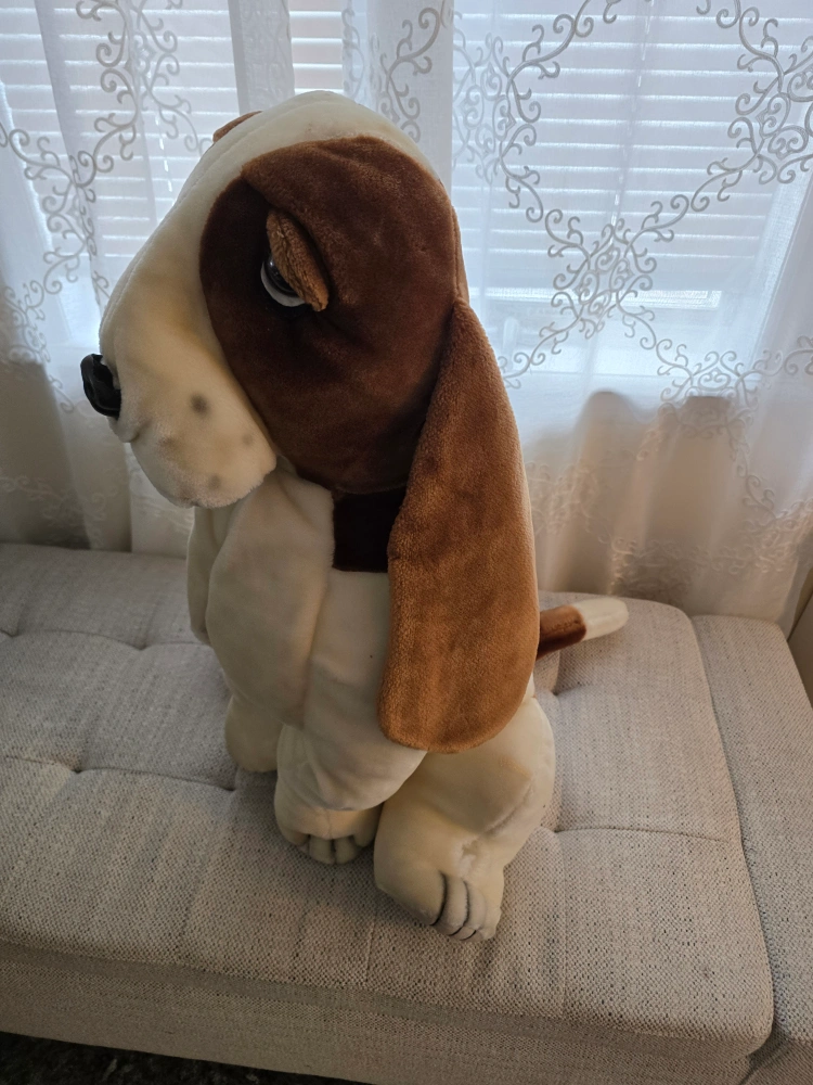Selling a cute Basset Hound plush toy! It measures approximately 24 inches tall and is in good condition. Perfect for any dog lover or collector
