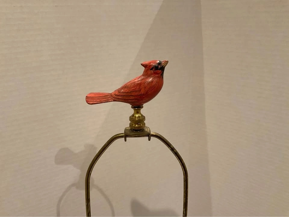 Table Lamp Handpainted Birdhouse Lamp with Cardinal Finial