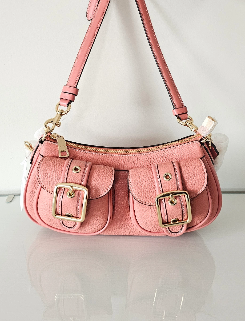 This is a brand new Coach Pebble Leather Ashton Shoulder Bag in a beautiful burnt coral colour!