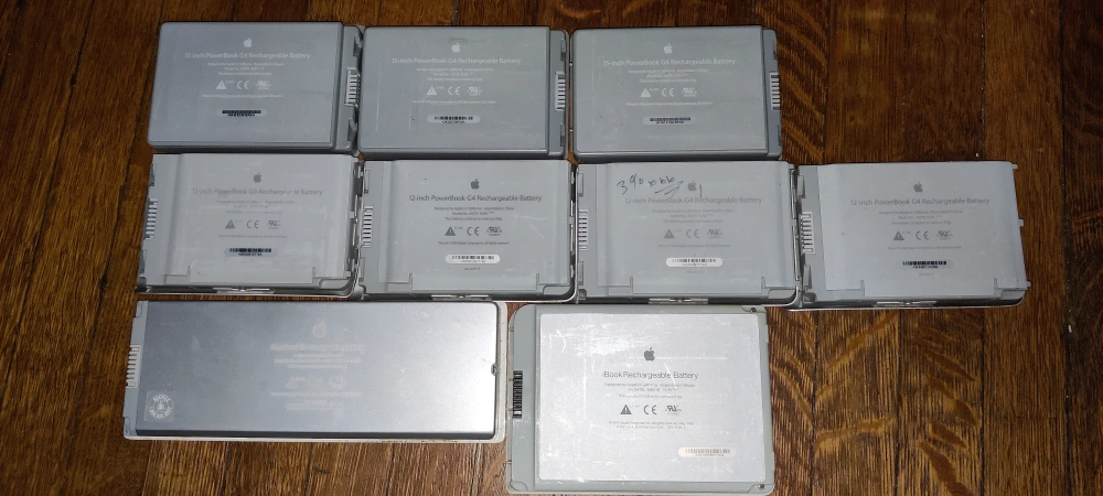 Selling a collection of 10 original Apple laptop batteries, perfect for collectors, vintage tech enthusiasts, or parts hunters.